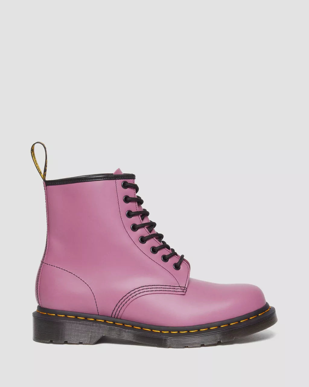 Introducing the iconic 1460 Smooth Leather Muted Purple Boot from Dr. Martens. The 8-eye boot features trademark grooved sides, heel-loop, yellow stitching, and an air-cushioned sole. Crafted from tough Smooth leather, this boot can be polished for a sleek look or scuffed-up for a rugged feel. With a durable DMS sole known for its comfort and stability, it's a timeless investment for your wardrobe.