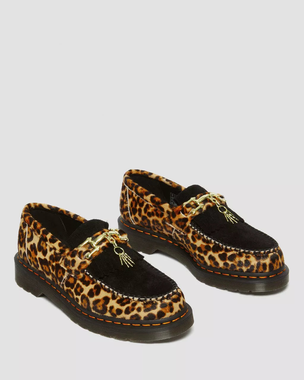 Take a walk on the wild side with our revamped Adrian Snaffle loafers, featuring a daring mix of leopard print Hair-On leather and Desert Oasis suede. Complete with a flashy gold skeleton hand charm on the signature snaffle detail, these loafers stand tall on a grooved smoke DMS sole, highlighted by bold yellow welt stitching.