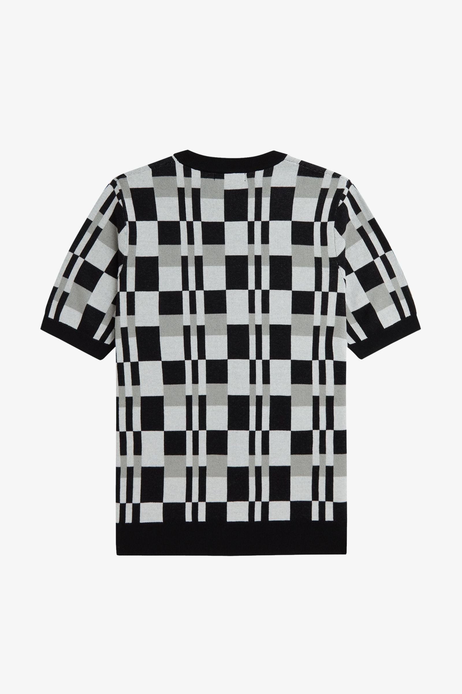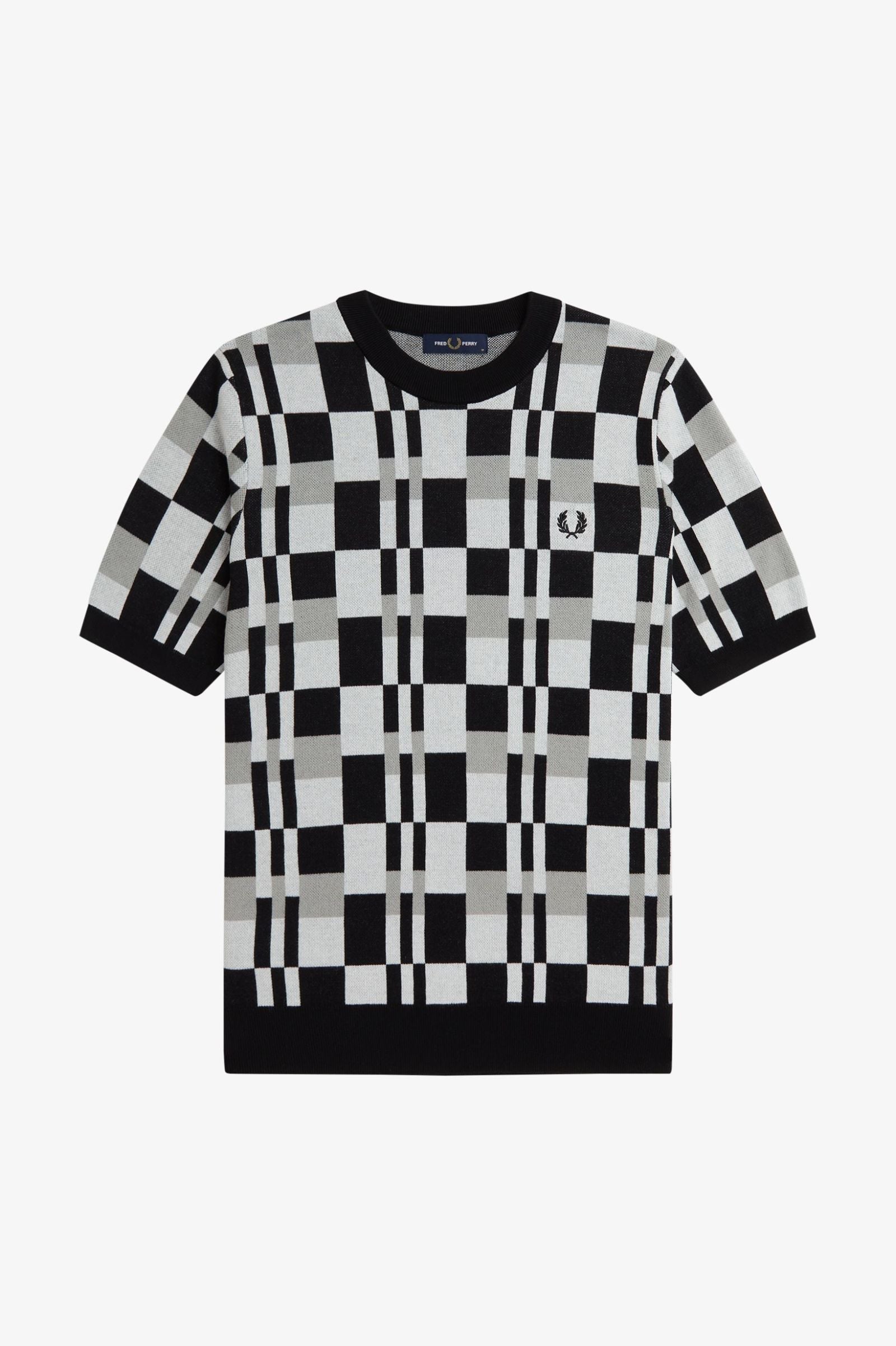 Stand out in style with the Fred Perry Knitted T-Shirt! This monochrome chequerboard design adds a playful touch to the classic ribbed knit, while the embroidered Laurel Wreath logo on the chest adds a touch of sophistication. Made with combed cotton for a comfortable fit, perfect for any casual occasion.