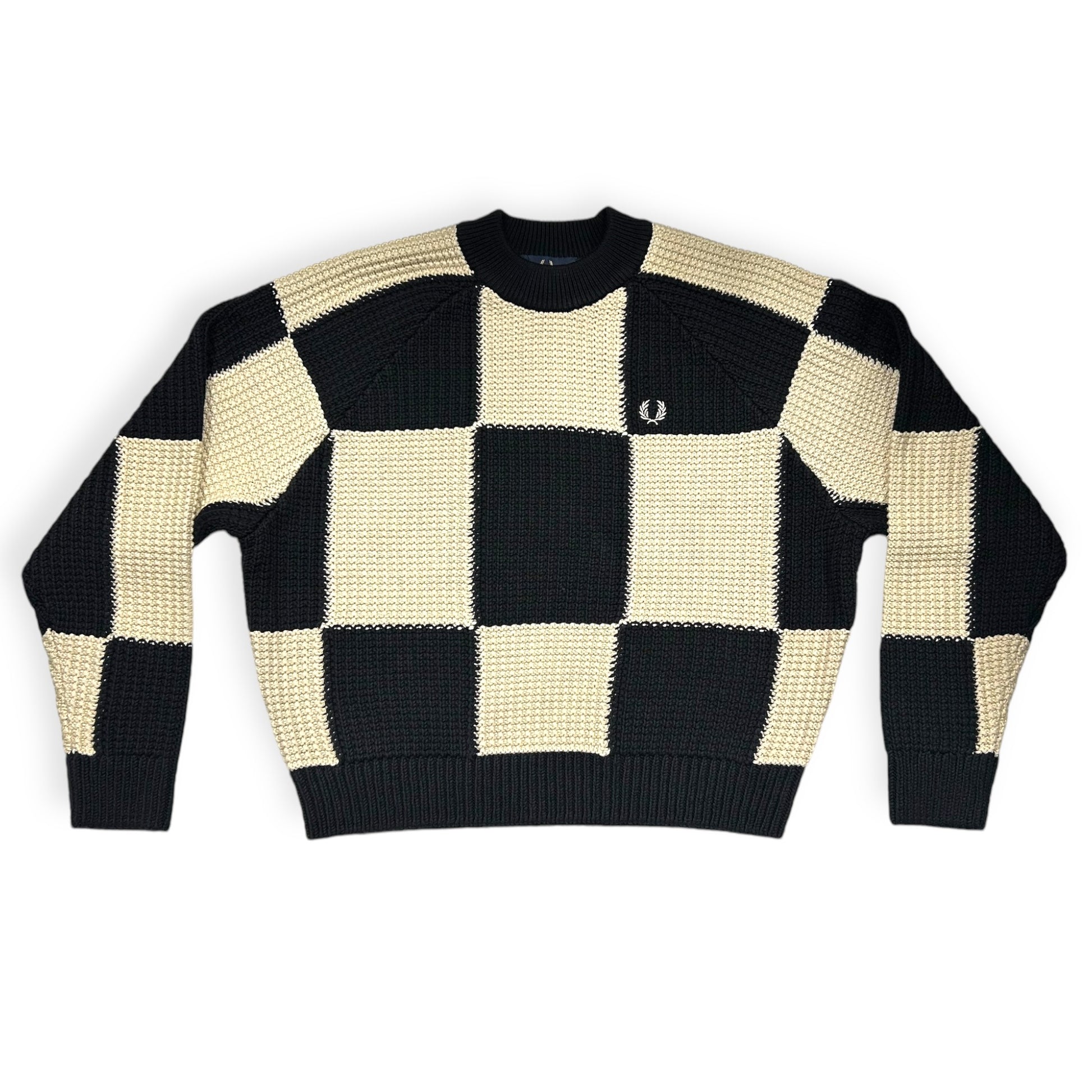 The perfect jumper for adding a playful touch to any outfit! This Fred Perry jumper features a unique textured chequerboard design that is sure to stand out. Stay warm and stylish with this quirky addition to your wardrobe.
