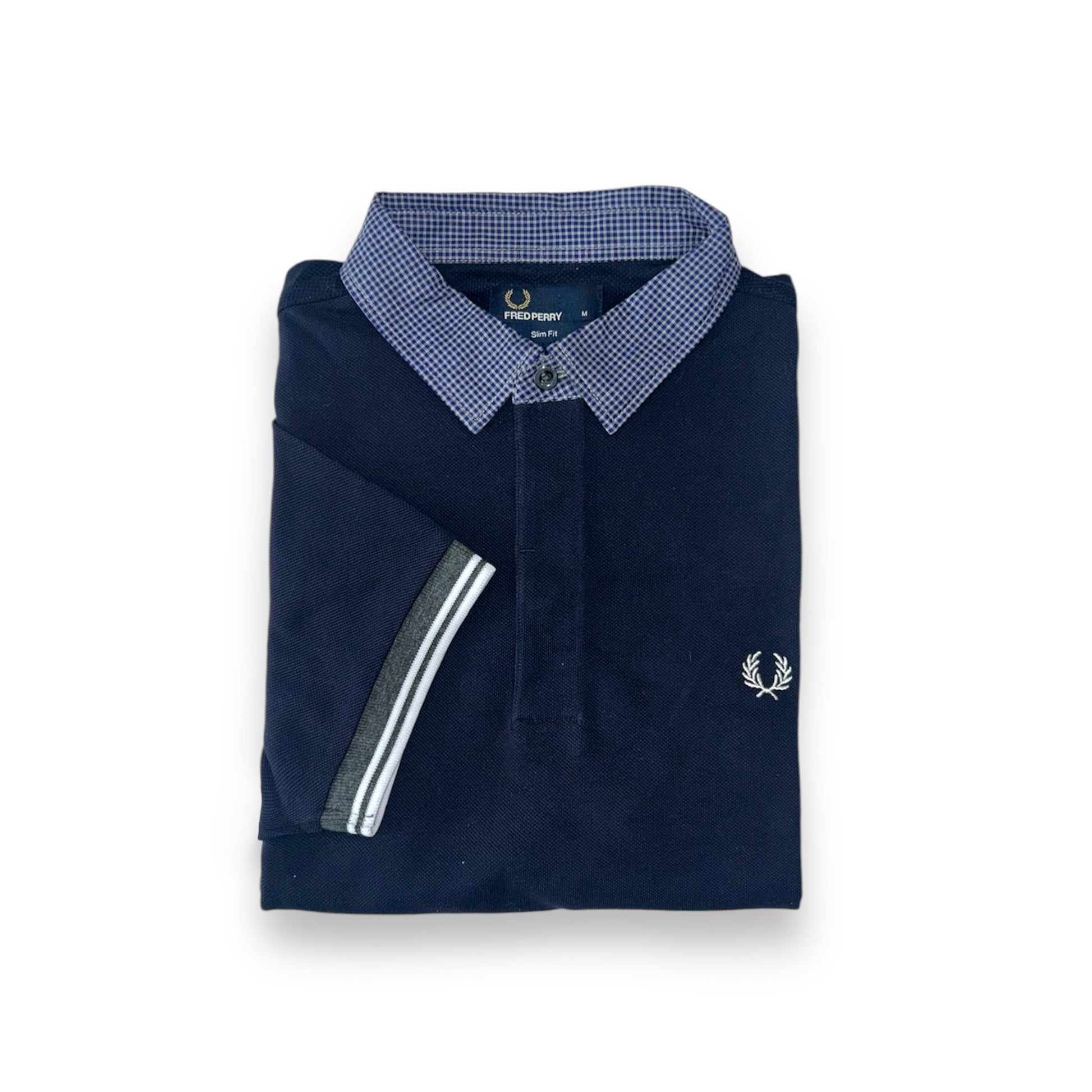 Score a style slam dunk with the Fred Perry Polo! In a slim fit with a navy pique and gingham collar, this polo adds a playful touch to your wardrobe. Go from casual to dapper in no time (and look good doing it).