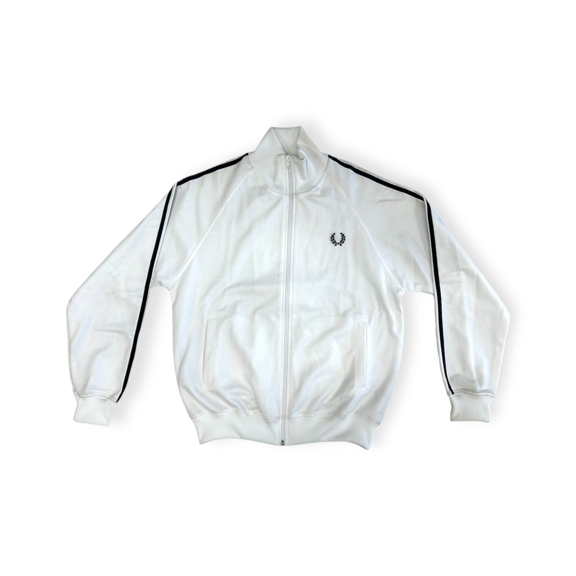 The Fred Perry Track Jacket in classic white and black is the perfect blend of style and comfort. Made with premium materials, this jacket is sure to keep you looking sharp and feeling cozy. A must-have for any fashion-forward individual. Get yours now! (But hurry, they're going fast!)