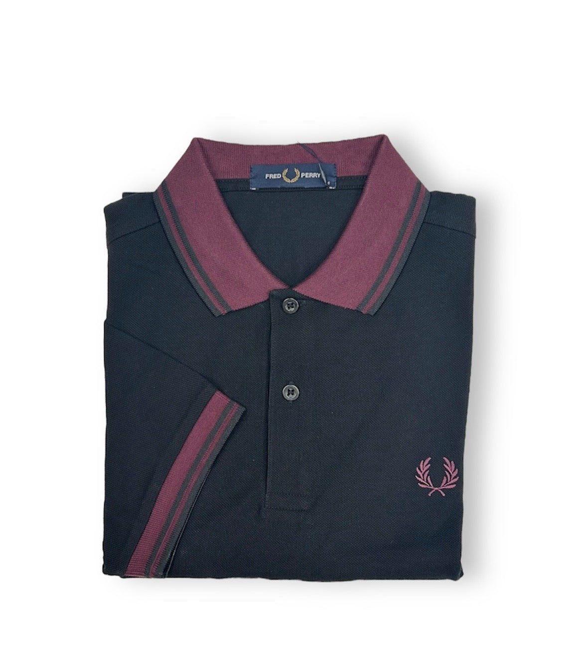 This stylish polo, with its black contrast rib and iconic twin tipped design, is a must-have for any fashion-forward individual. Made by the renowned brand Fred Perry, it exudes a playful and effortlessly cool vibe. Perfect for making a statement on the golf course or in the city.
