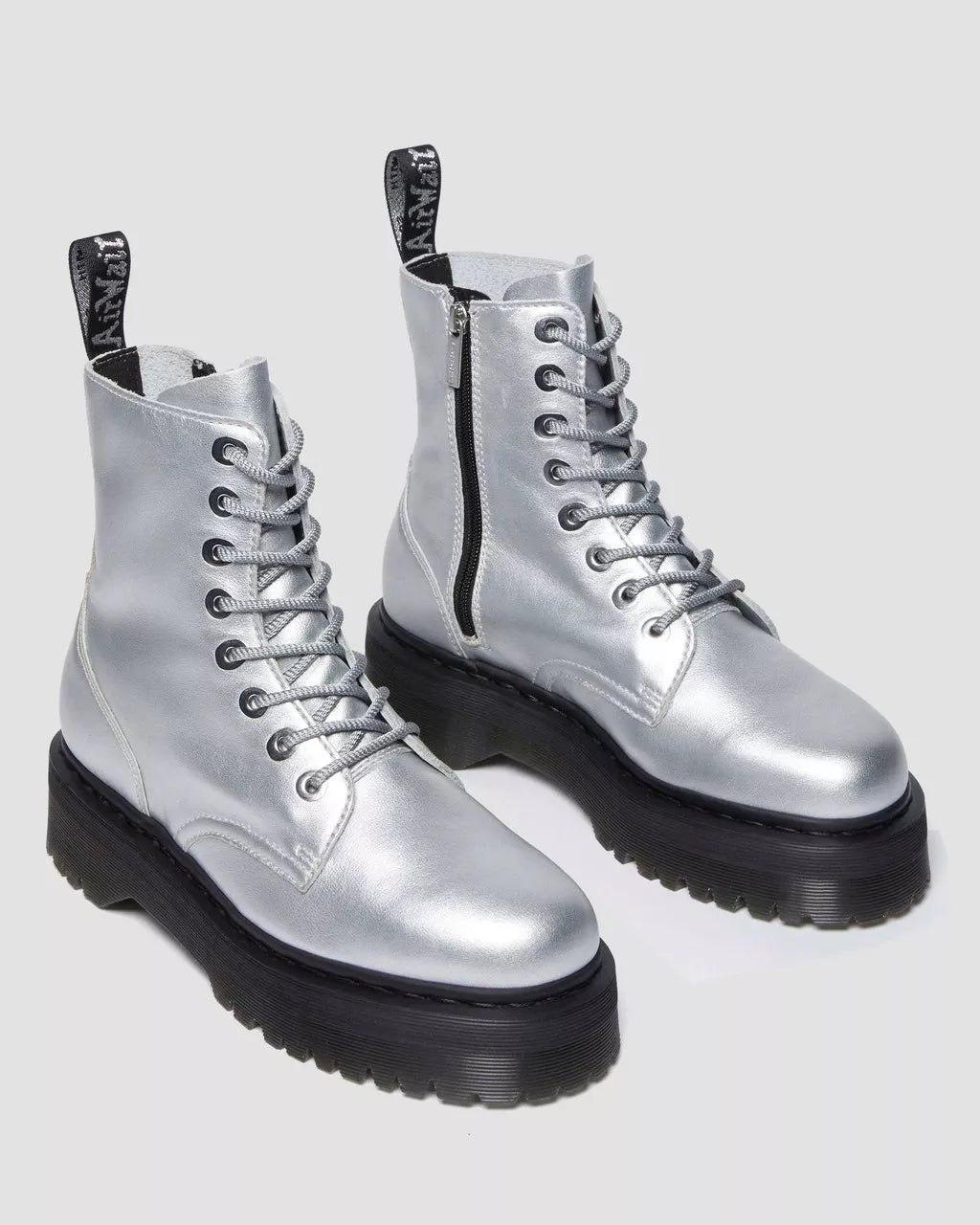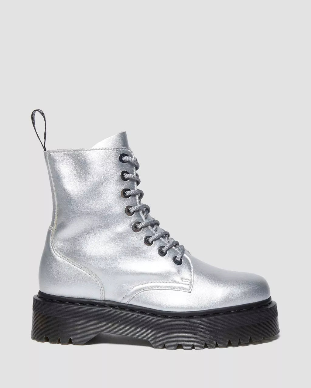 Put your best foot forward with the Jadon Metallic Leather Platform Boots. Designed by us and iconicized by you, these silver statement boots are made from durable, soft-touch Metallic Nappa leather and feature an imposing platform Quad sole. With an 8-eye design, monochrome welt stitch, nickel eyelets, and an ankle zip, these boots will elevate any outfit to the next level.