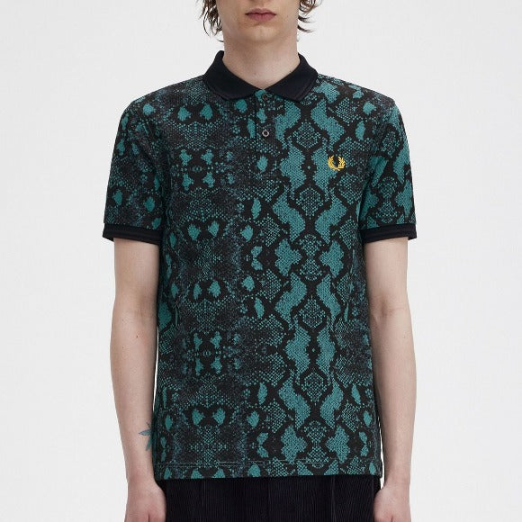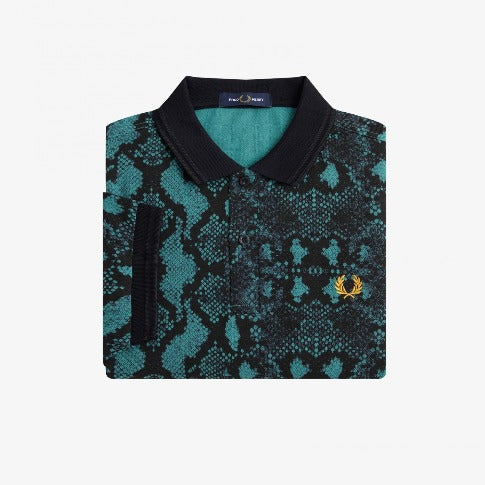 This Fred Perry shirt is constructed from poly-cotton fabric and features a stylish snake print pattern. It's a timeless wardrobe staple, perfect for everyday casual looks. Its comfortable fit and lightweight feel make it a must-have.