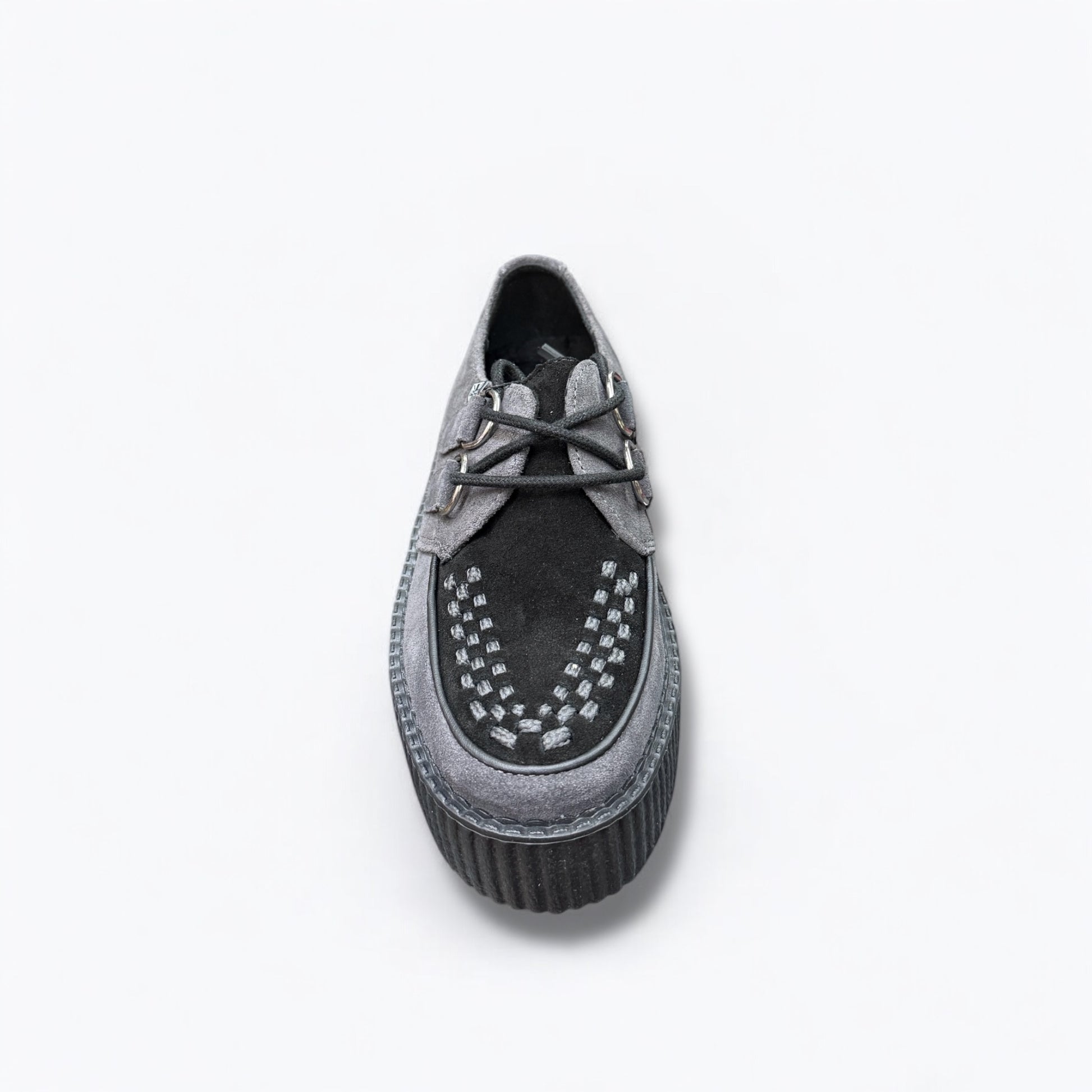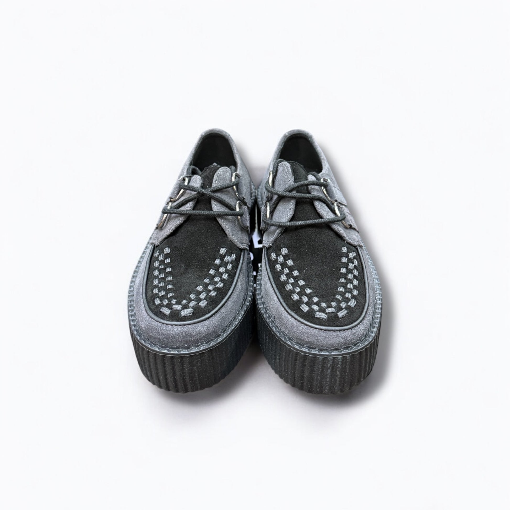 These T.U.K Black and Gray Suede Viva Mondo Creepers are the perfect combination of edgy and comfortable. With a unique design featuring black and gray suede, these creepers will add a cool touch to any outfit. Step out in style and stand out from the crowd with these must-have shoes!
