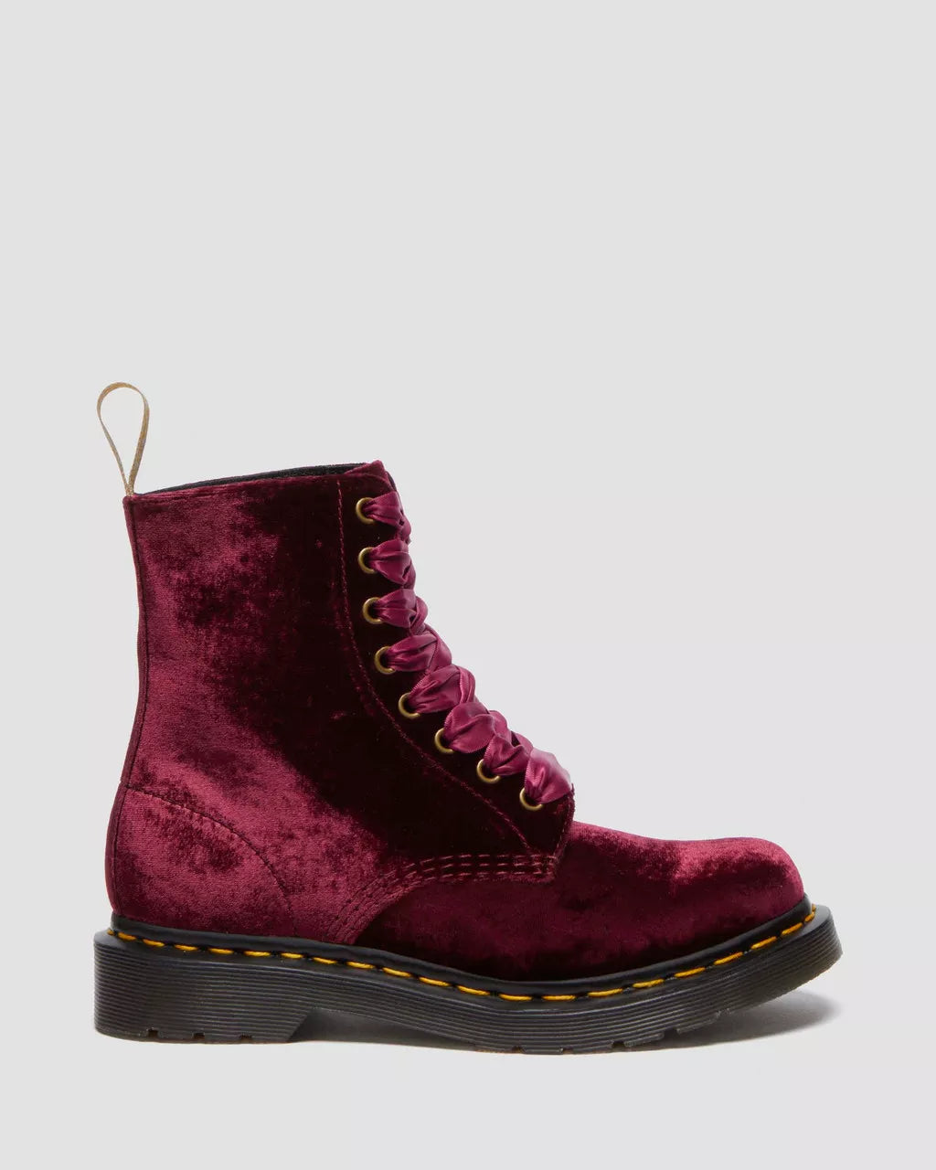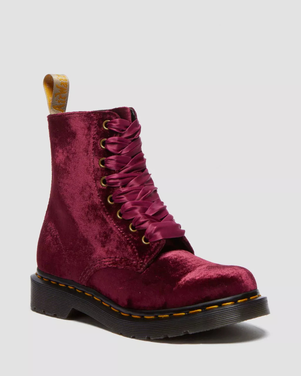 Our 1460 boot is getting a makeover - vegan-friendly, grunge-inspired velvet, and eye-catching tonal ribbon laces make this classic boot a showstopper. Antique gold eyelets, yellow welt stitching, and our signature heel loop add the perfect finishing touches. Coincidentally born on April Fool's Day in 1960, the 1460 boot has become a must-have style. Known for its 8-eye design, it's easily recognizable and impossible to duplicate. Velvet is the ultimate soft and durable fabric, with a smooth feel and tough finish. Our Goodyear-welted lines are sealed with our signature stitch for added strength.