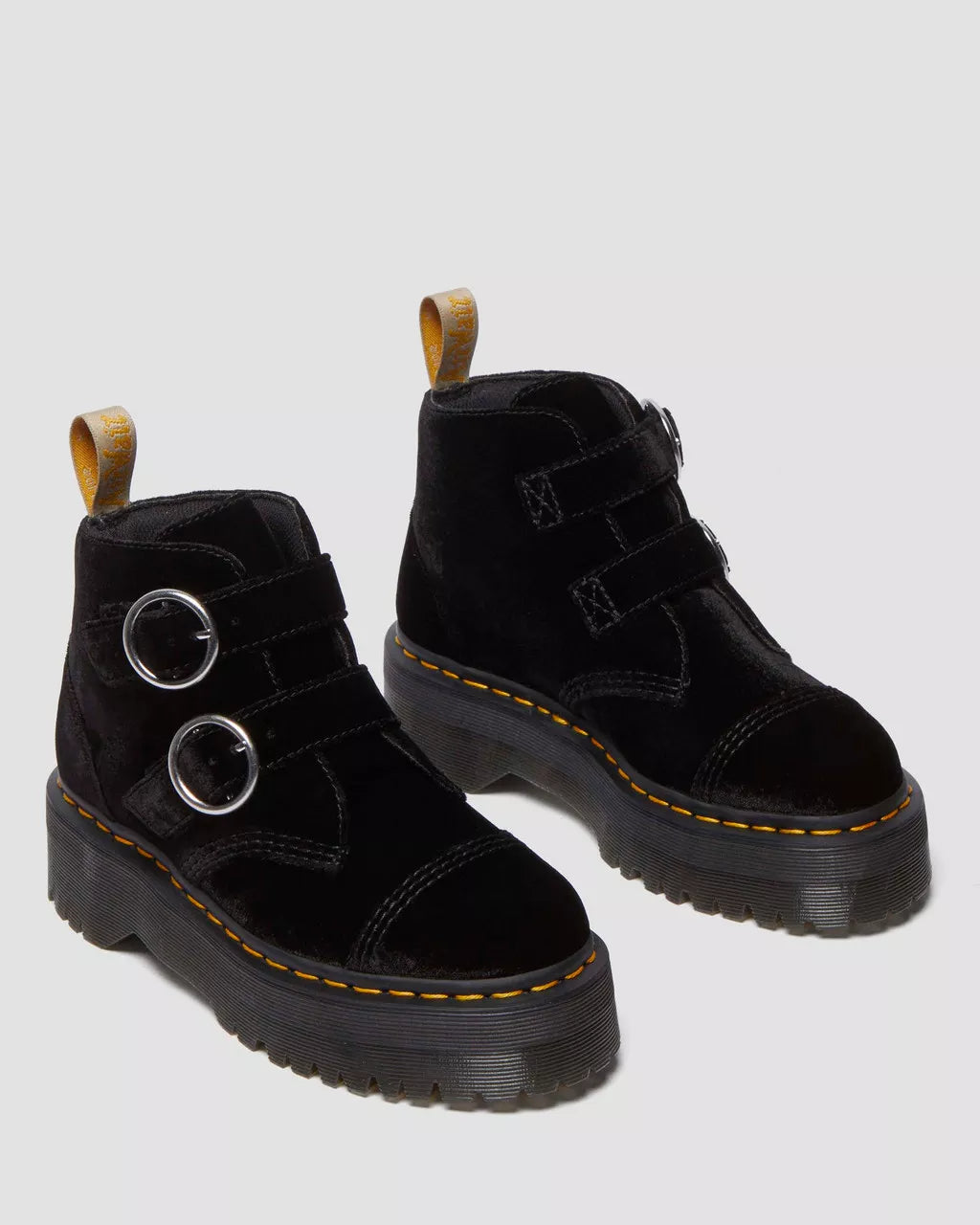 Elevate your style game with our Vegan Devon Velvet Platform Boots! These statement boots feature a luxurious velvet material that's 100% vegan, so you can look good and feel good. With a sturdy platform sole, you'll stand tall and trendy wherever you go. Vegan and velvet? It's a win-win!