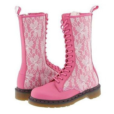 For the ones who love edge with cute, this is the boot for you. 14 eyelets in pink hardware, white trim lace throughout the shoe and with candy pink leather as the base, it’s a great choice for the ones who want something unique. Zipper on the side for easy access and if you’re on the go, with the signature AirWair soles for maximum comfort.