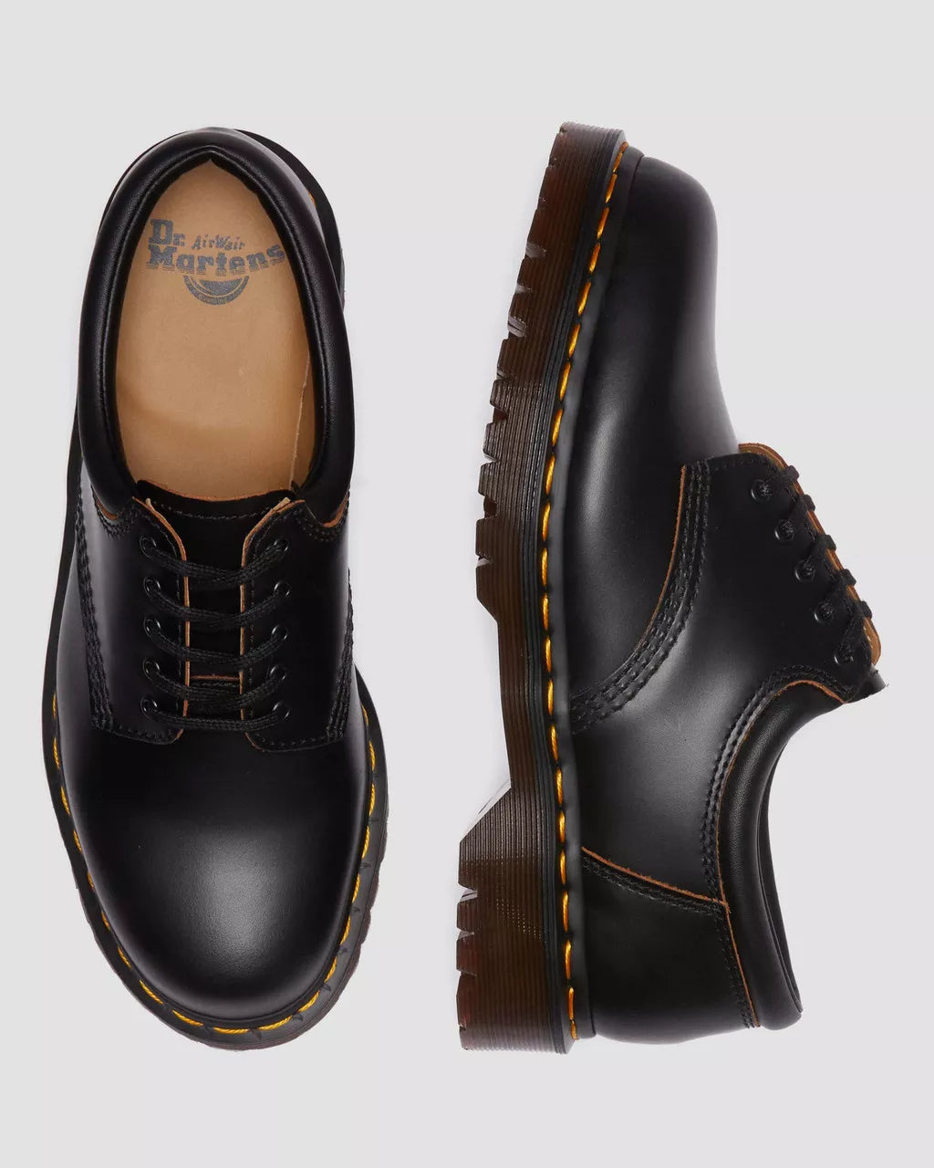Developed for plushness, our 8053 5-eye shoe is crafted from character-rich Vintage Smooth leather. The shoe features a flexible PU collar for added wearing comfort, plus a rugged BEN outsole for a bold flair. Finished with black eyelets and a black and yellow heel loop, the shoe is a retro edition of our signature Smooth leather with a light grain and different base colors. Construction-made with Goodyear-welted lines heat-sealed at 700˚C and strengthened with our signature welt stitch. Footbed-slimmer and more tapered toe shape.