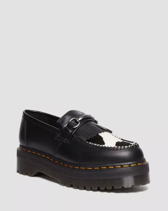 Get ready to strut in style with the Adrian Snaffle Platform Loafer Cow Print! These playful shoes feature a unique cow print that will definitely turn heads. Plus, the platform and snaffle detailing adds a touch of quirkiness and fun to any outfit. Perfect for those who don't take themselves too seriously. (Moos not included.)