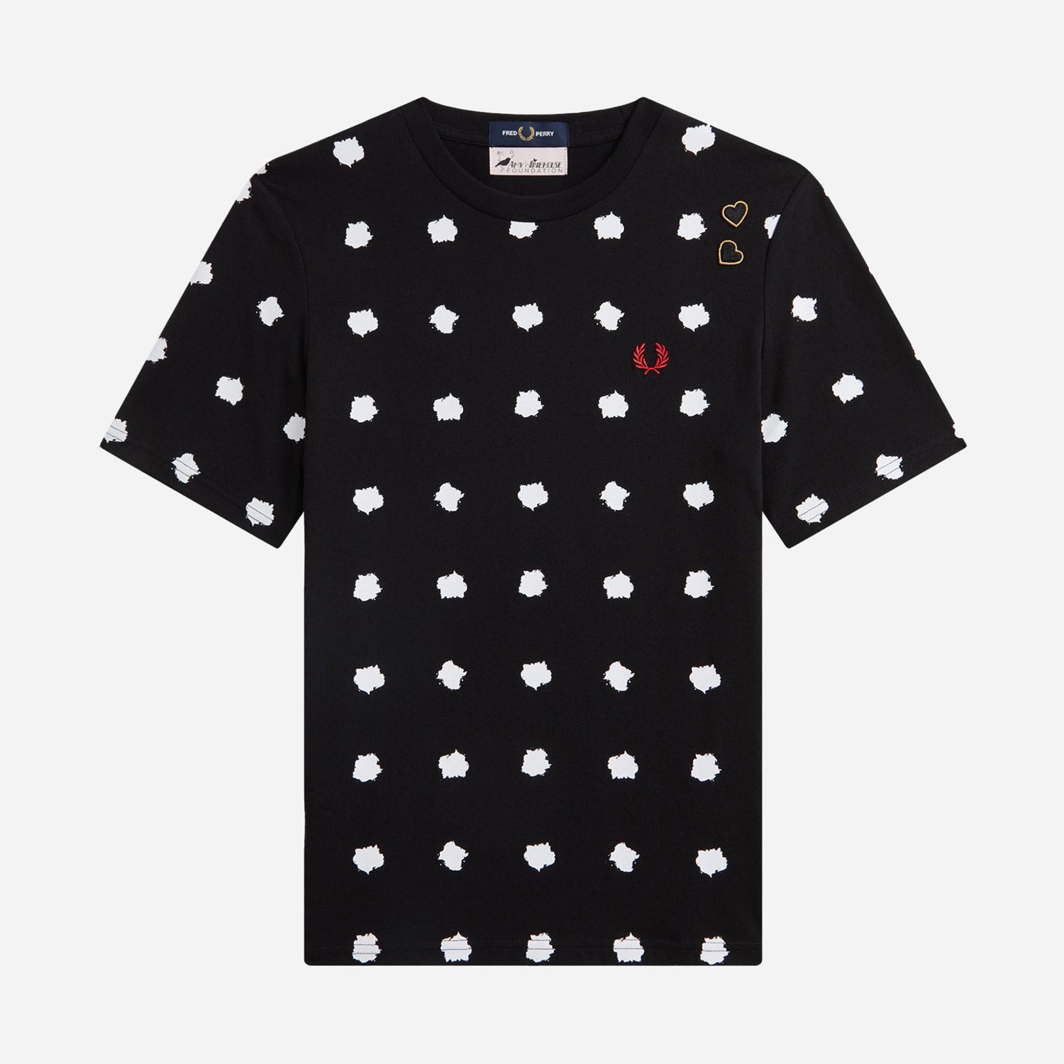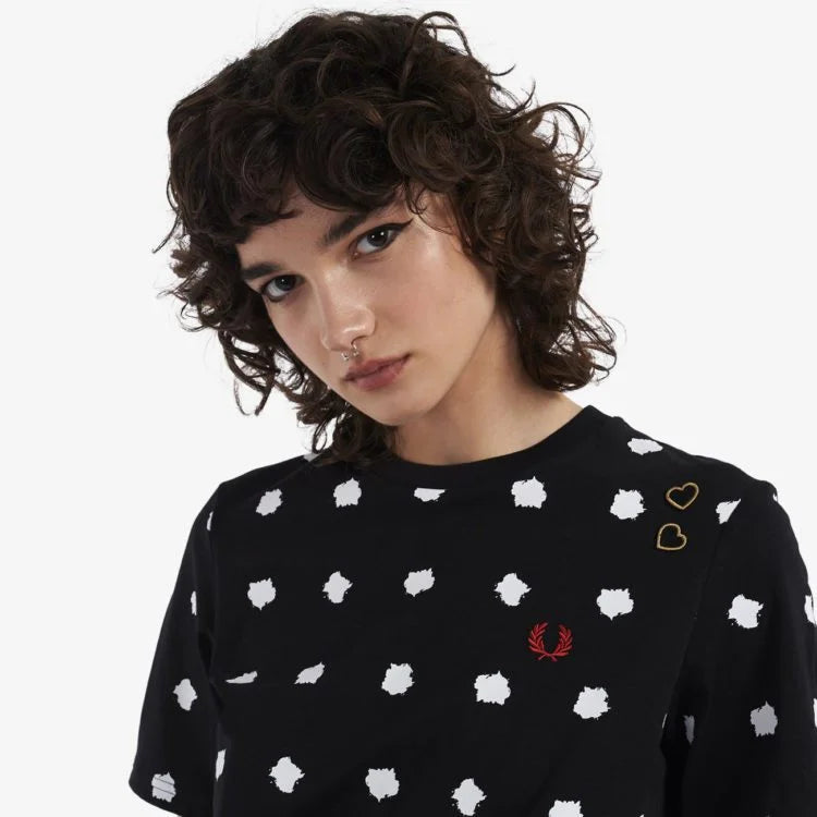 The Amy Winehouse Foundation and Fred Perry have joined forces to create a collection inspired by the singer's signature pin-up look. Made from premium cotton, the Fred Perry x Amy Winehouse Black Spot Print Tee features a regular fit with two hearts and the Laurel Wreath logo on the right chest. A nod to Winehouse's famous tattoos, this top is the ultimate way to sport an iconic and trendy style. 100% cotton Regular fit Fred Perry / Amy Winehouse branding details Embroidered artwork Ribbed collar.