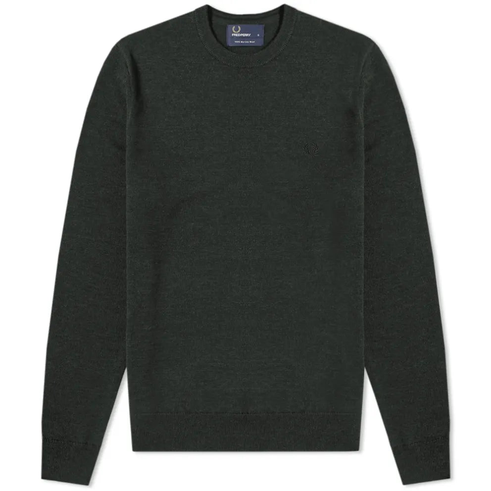 This Fred Perry crew neck jumper has been designed to exude a warm forest green hue, mirroring the signature warm-up style of the label. Crafted from a sumptuously soft merino wool fabric, the sports-inspired piece is effortlessly transformed into a smart-casual look. Signature branding is subtly added in the form of twin tipping and an embossed Laurel Wreath logo. Finishing touches such as 100% merino wool fabric and ribbing on the crewneck, cuffs, and hem complete this timeless design.