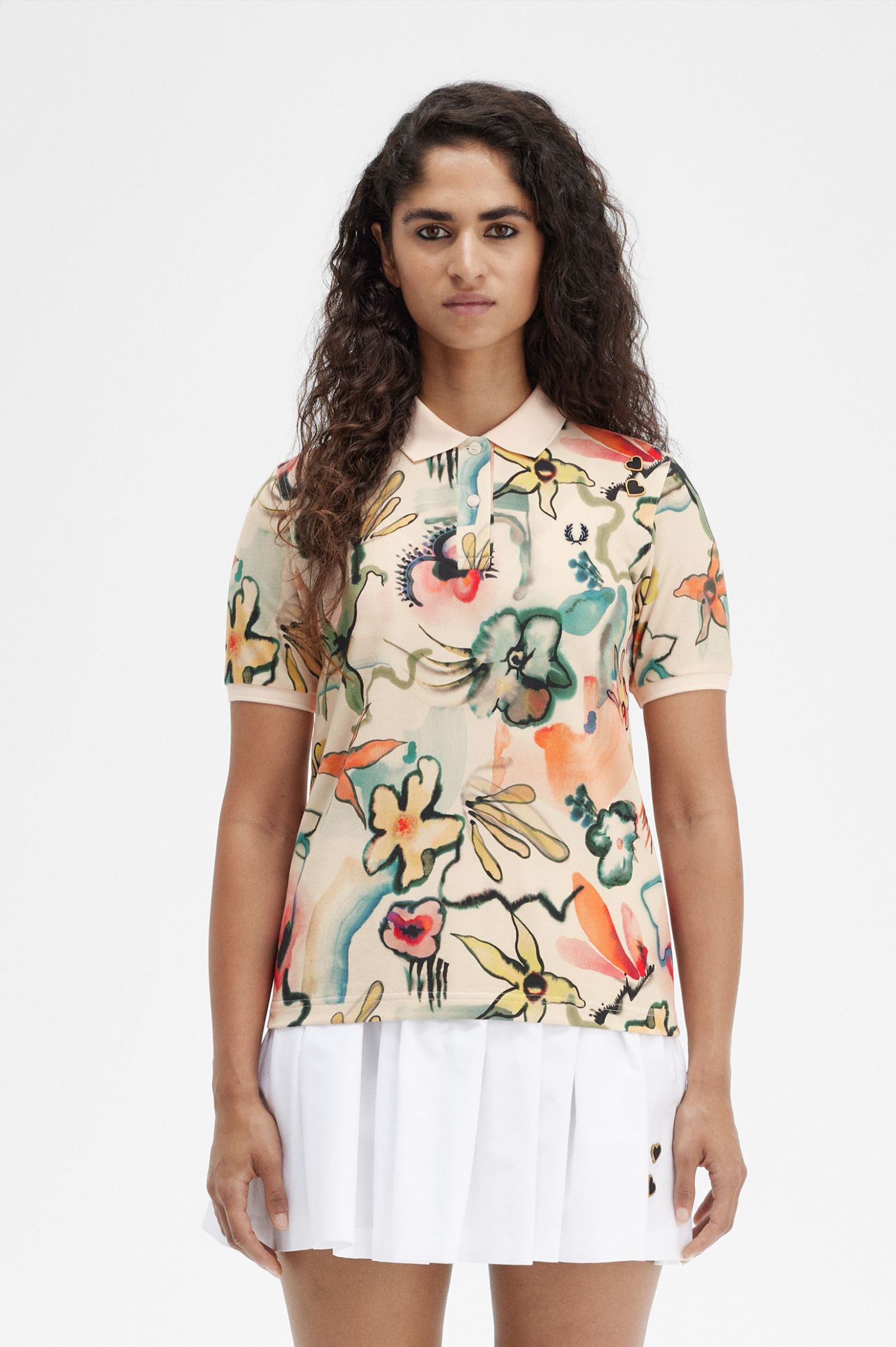The Floral Print Fred Perry Shirt is a piqué polo shirt that combines style and storytelling. Made with soft cotton piqué fabric for a comfortable fit, it features an all over digital floral print inspired by Caribbean escapism. With a regular fit, flat knit collar and cuffs, branded buttons, and an embroidered Laurel Wreath on the left chest with Amy's heart patches, this shirt is perfect for those who appreciate both fashion and culture.
