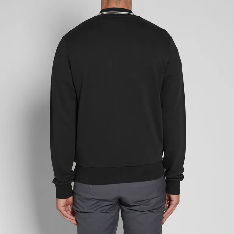 Stay warm in timeless style with the Fred Perry Bomber Neck Sweater. The smooth cotton jersey and bold white accents provide a smart, contemporary look inspired by the original Fred Perry bomber. An iconic Laurel Wreath sits proudly across the chest, while ribbed trims complete the athletic look.