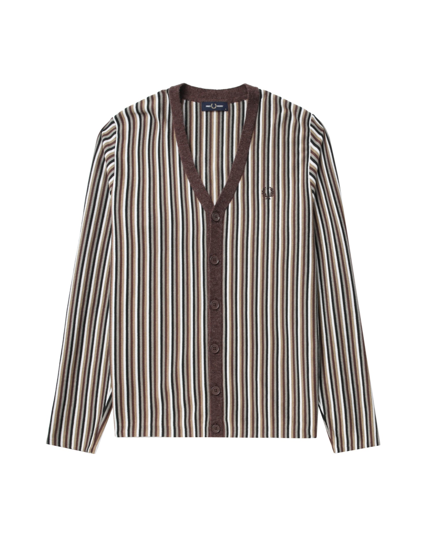 This Fred Perry Fine stripe cardigan is expertly crafted with quality material and a classic design. Featuring a fine stripe pattern, this cardigan is both sophisticated and versatile. Perfect for adding a touch of refinement to any outfit, this cardigan is a must-have for any fashion-forward individual.