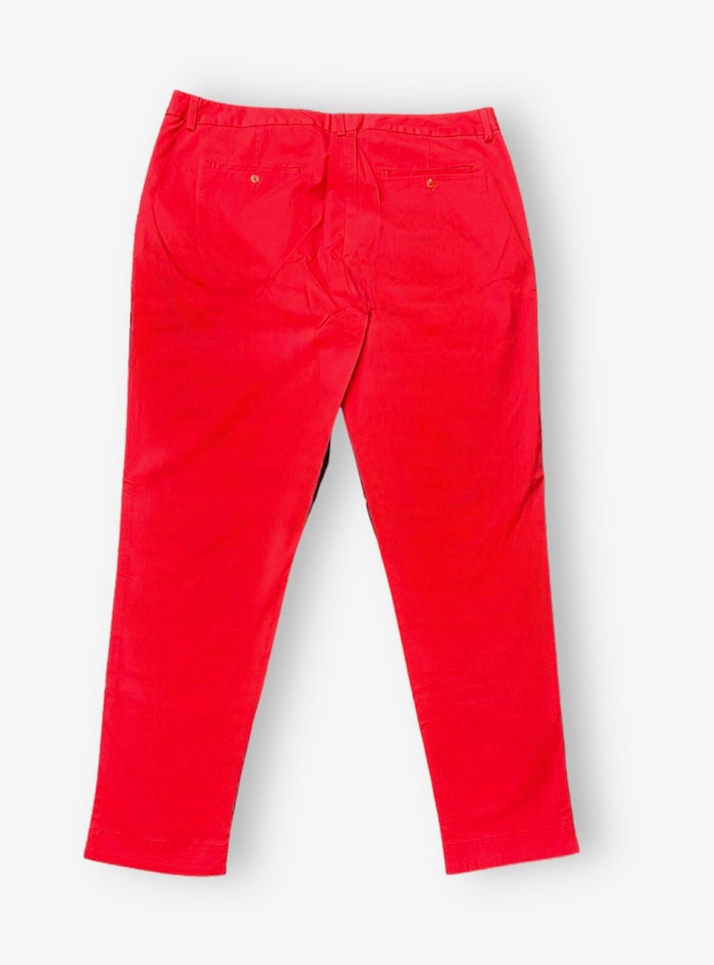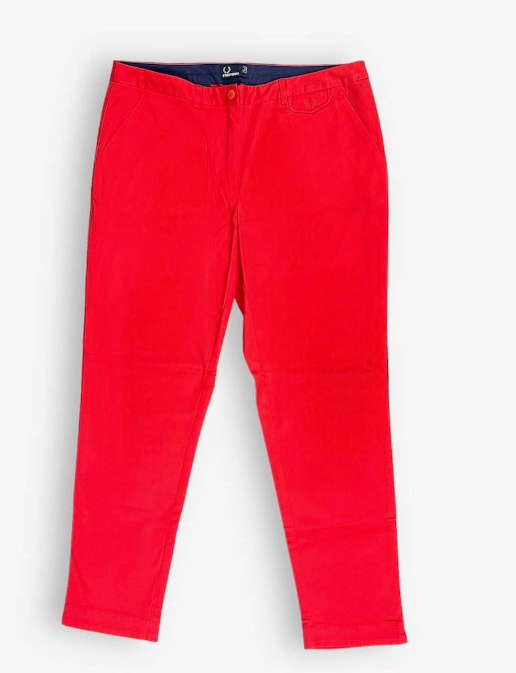 Get ready to turn heads in these Fred Perry ladies slim cropped chinos in fiery red! Designed with a flattering slim fit and cropped length, these chinos will elevate any outfit. Pair them with your favorite top and sneakers for a stylish and playful look.