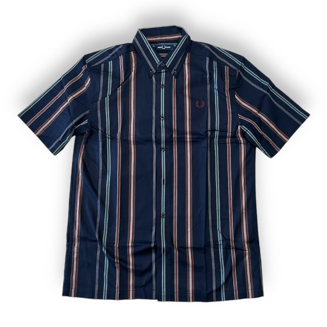 Upgrade your wardrobe with the Fred Perry Navy Stripe Shirt. Featuring a classic yet trendy design and high-quality construction, this shirt will add a touch of sophistication to any outfit. Perfect for a day out or a night on the town, this shirt is a must-have for any fashion-forward individual.