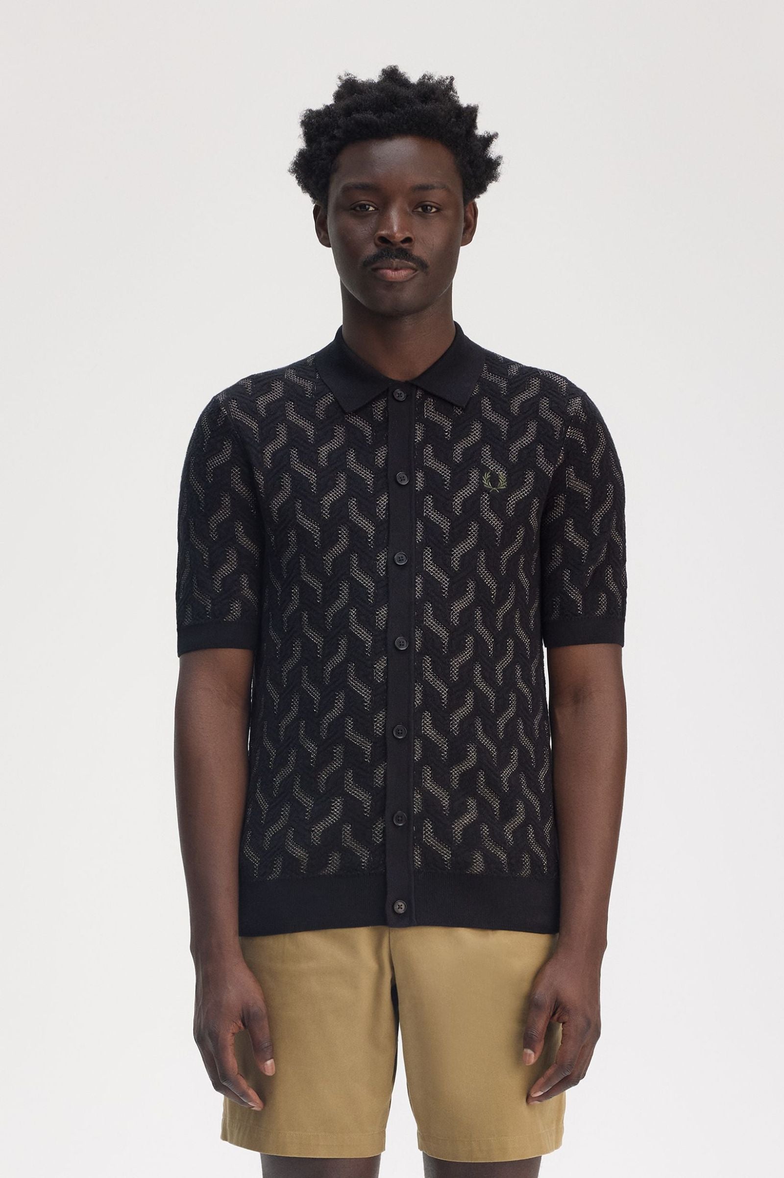 Get cozy with the Fred Perry Pointelle Cable Knitted Shirt! This playful piece features intricate cable knitting for a unique look and a comfortable fit. Perfect for adding a touch of quirkiness to any outfit, this shirt is sure to become a staple in your wardrobe.