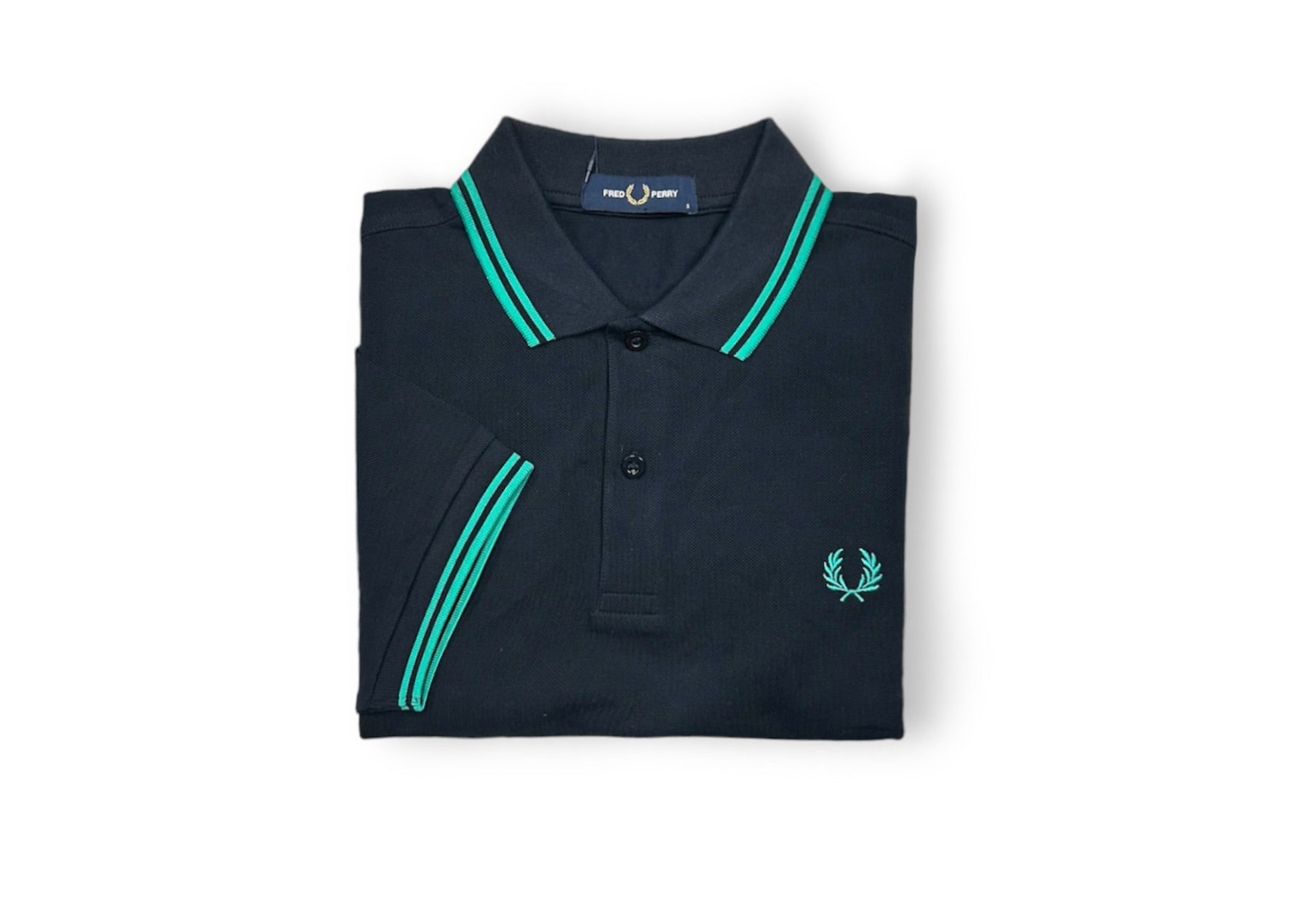 Add a touch of playful style to your wardrobe with the Fred Perry Polo in navy and dark mint. Embrace quirky color combinations while enjoying the comfort and quality of this unique piece. Perfect for the fashion-forward individual who doesn't take themselves too seriously.
