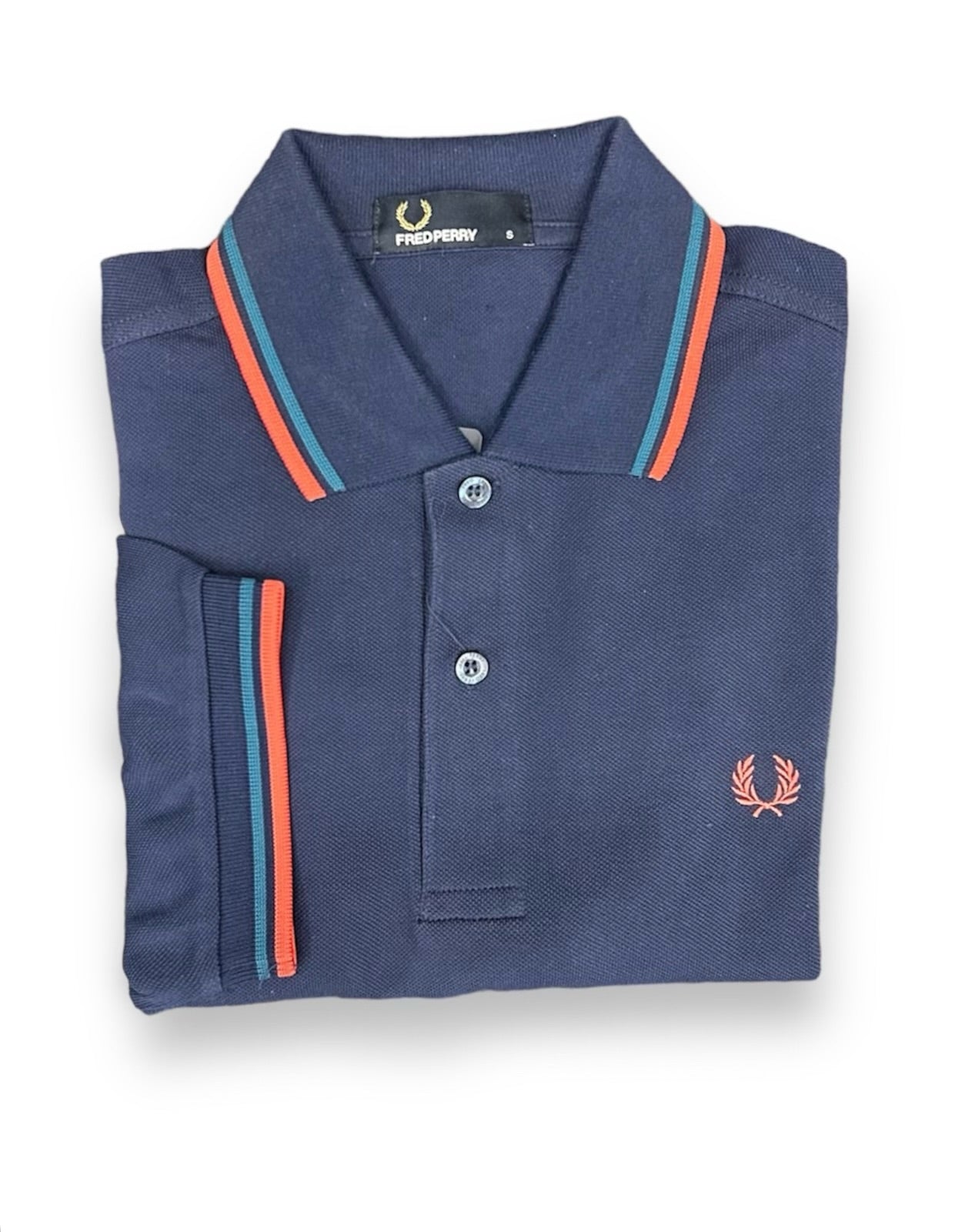 Stay stylish and comfortable with the Fred Perry Twin Tipped Polo in carbon blue teal and coral. This playful shirt features a unique twin tipped design and is made from a soft and breathable fabric, perfect for any casual occasion. (Score a double play of style and comfort with this Fred Perry Polo! In carbon blue teal and coral, it's one-of-a-kind with its twin tipped pattern. Made of soft, breathable fabric--great for anything laidback.)