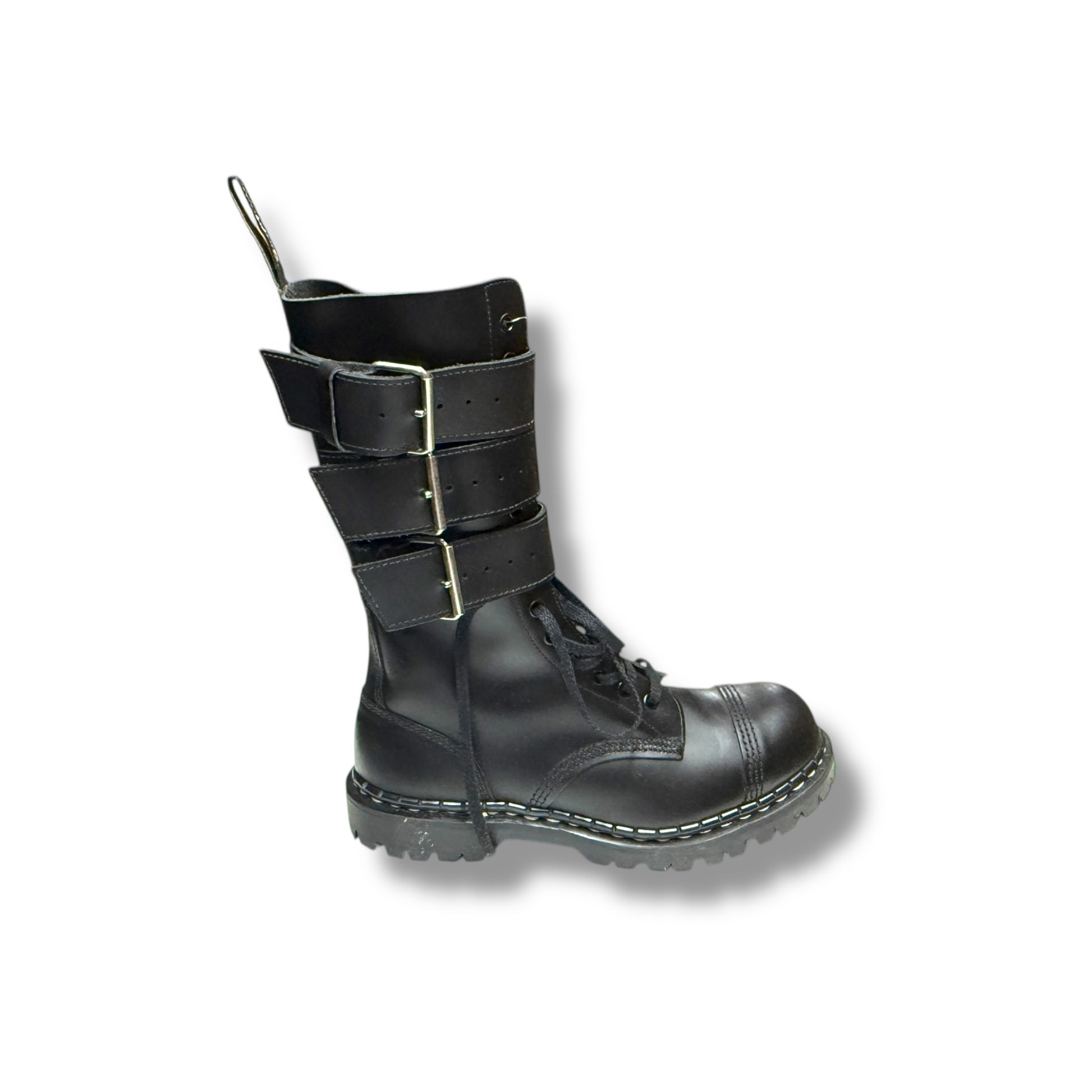 Get ready to stomp around in style with the Gripfast Black 14 Eyelet S/Cap Strap Boot! These badass boots feature a sturdy grip for any terrain and a sleek black design with 14 eyelets and a strap detail. Perfect for adding some edge to your wardrobe.