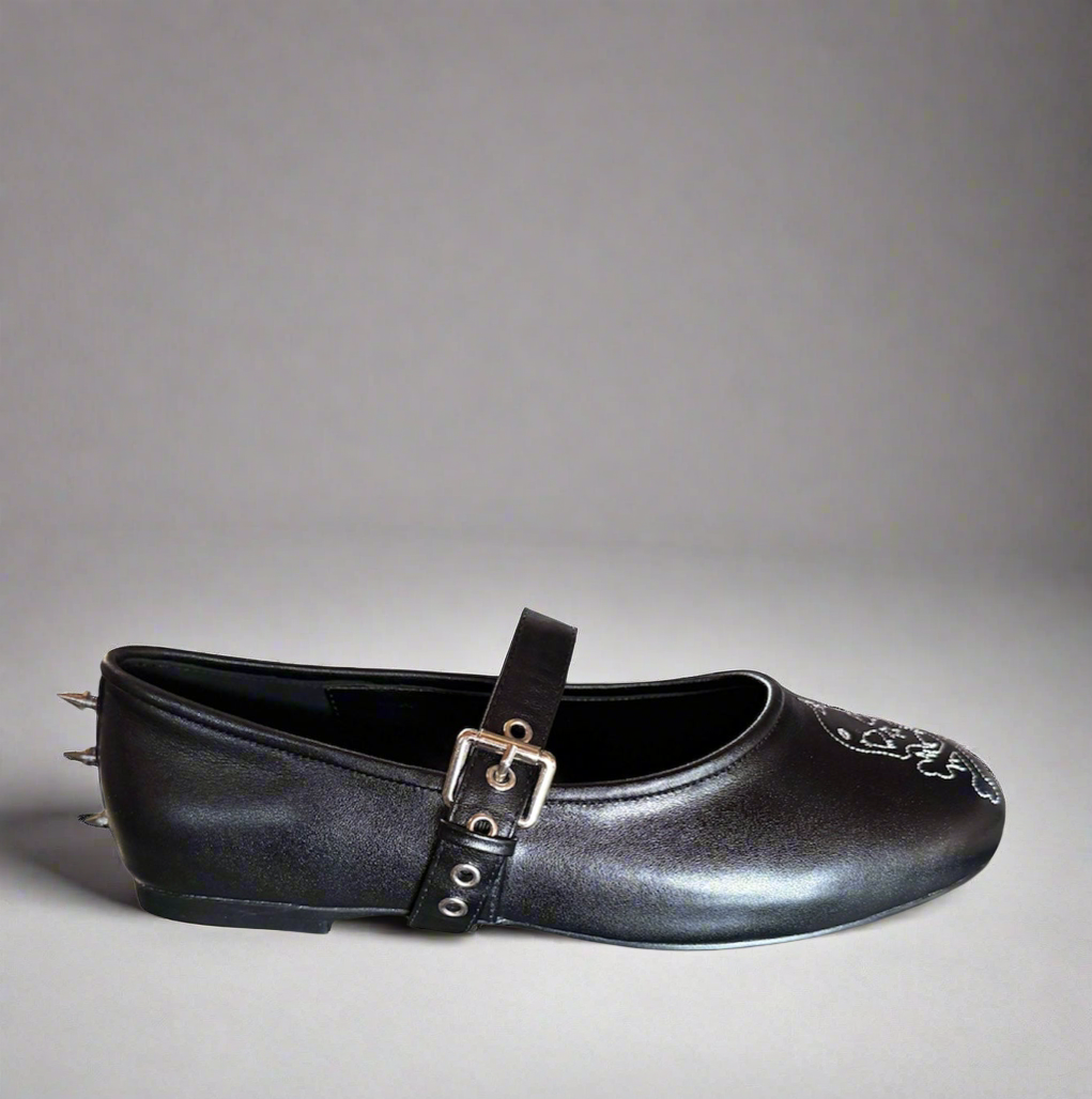 The Helena Mary Jane shoes offer a unique blend of punk and elegance with their sleek design and bold "Punk n Kisses" label. Perfect for any edgy fashionista, these Mary Janes will add a touch of rebellious style to any outfit. Made with high-quality materials, these shoes are durable and comfortable for all-day wear.