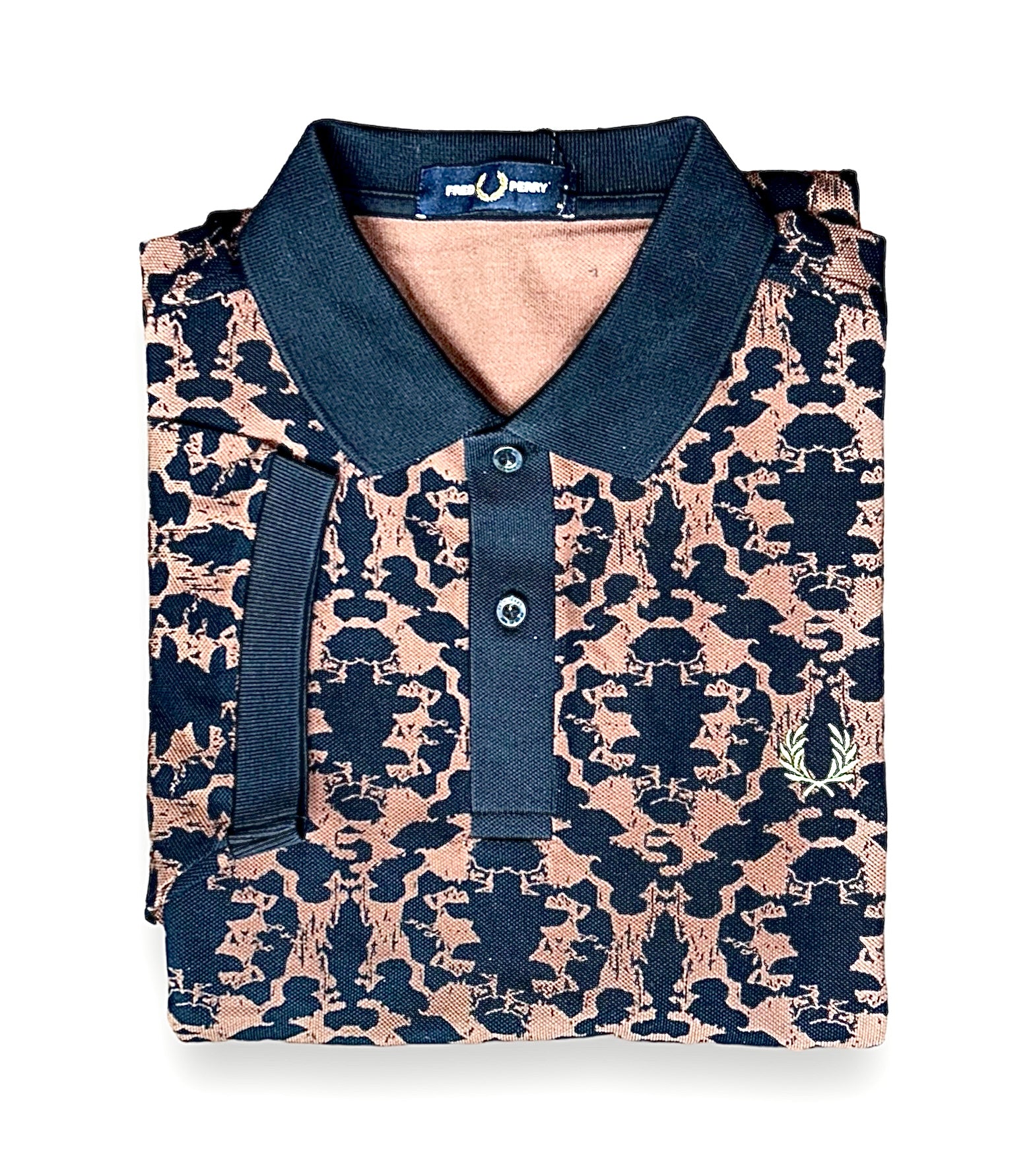 This Ink Blot Print Fred Perry Shirt is sure to make a statement! With a unique ink blot design, it adds a touch of quirkiness to any outfit. Made with quality materials, it's not just stylish, but comfortable too. Show off your playful side with this one of a kind shirt.