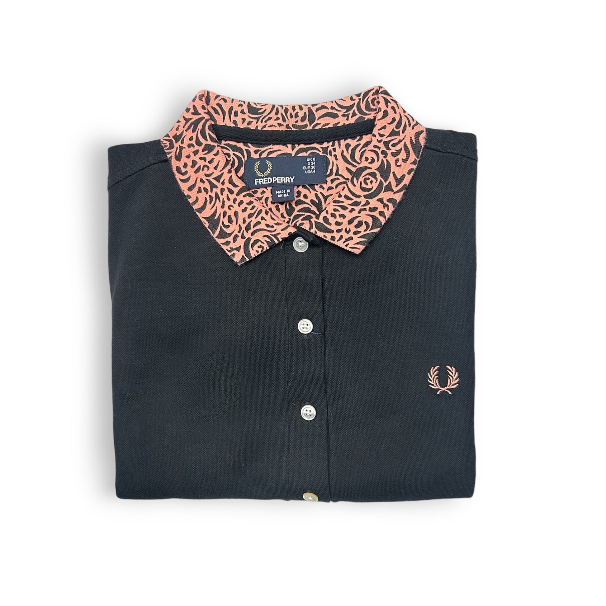 Unleash your wild side with our Ladies Twin Tipped Fred Perry Shirt! This standout collared shirt features a trendy rose leopard print that's sure to turn heads. Stay stylish and comfortable with this playful addition to your wardrobe.