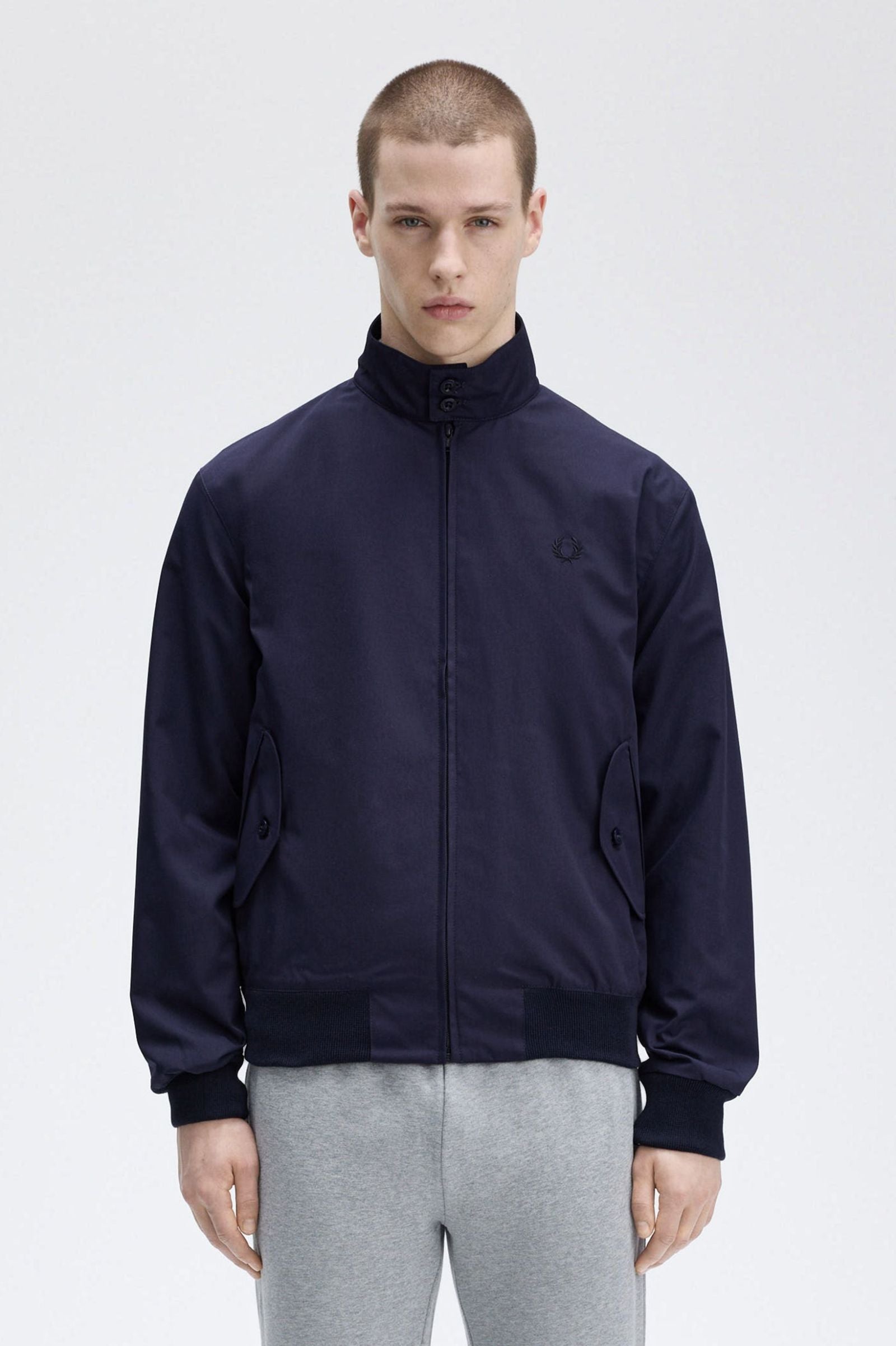 Get your hands on the FRED PERRY Harrington jacket, crafted in England just like it's always been. Made with a sturdy cotton/poly mix, it features unique elements like flap pockets, a buttoned collar, and a stylish tartan lining. Plus, it's water-resistant and has an internal zip pocket for your belongings. Perfect for any occasion.