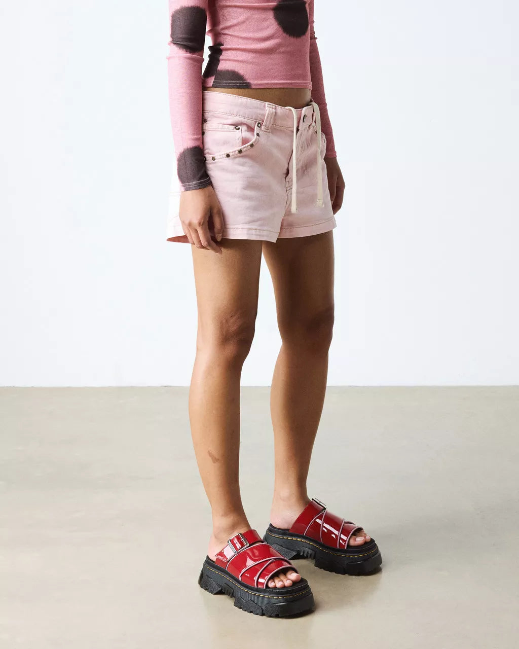 The Mattison slide arrives in striking scarlet red Soft Patent leather with dusty rose piping, built on the iconic Mattison platform sole. Featherlight EVA midsole pairs with a jagged PVC tread that extends up the sidewalls for unmistakable edge. Suede-covered foam footbed delivers all-day comfort, while an adjustable strap ensures a secure fit. Signature grooving and yellow stitching complete the look—a statement piece that commands attention.