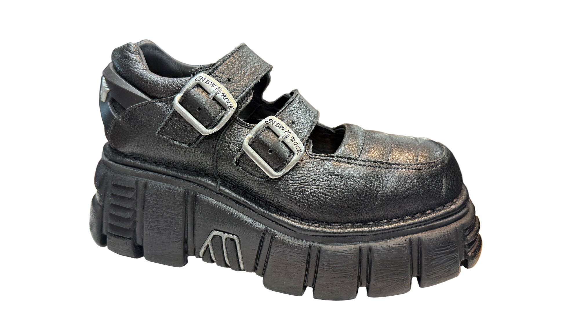 The Shoe M-MET059-C1 of METALLIC COLLECTION. Genuine Leather. Genuine Hair Leather New Punk and rock Design with the power and finishing of a original Newrock.. The popular and Original Newrock design goth and metallic together in this style.. Fashion and Rock Design reloaded with the most extreme original newrock power.