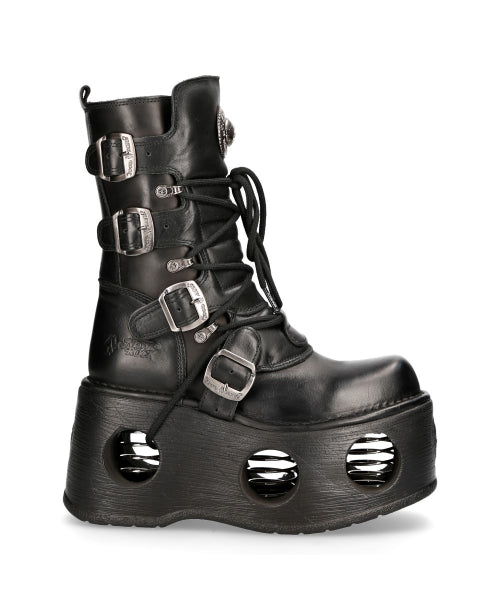 Step out in style with our New Rock Metallic Boots M-373-S2. From our METALLIC collection, these genuine leather boots feature eye-catching buckles and a unique platform with holes. Whether you're feeling edgy or playful, these boots will make a statement. (Sorry, not sorry.)
