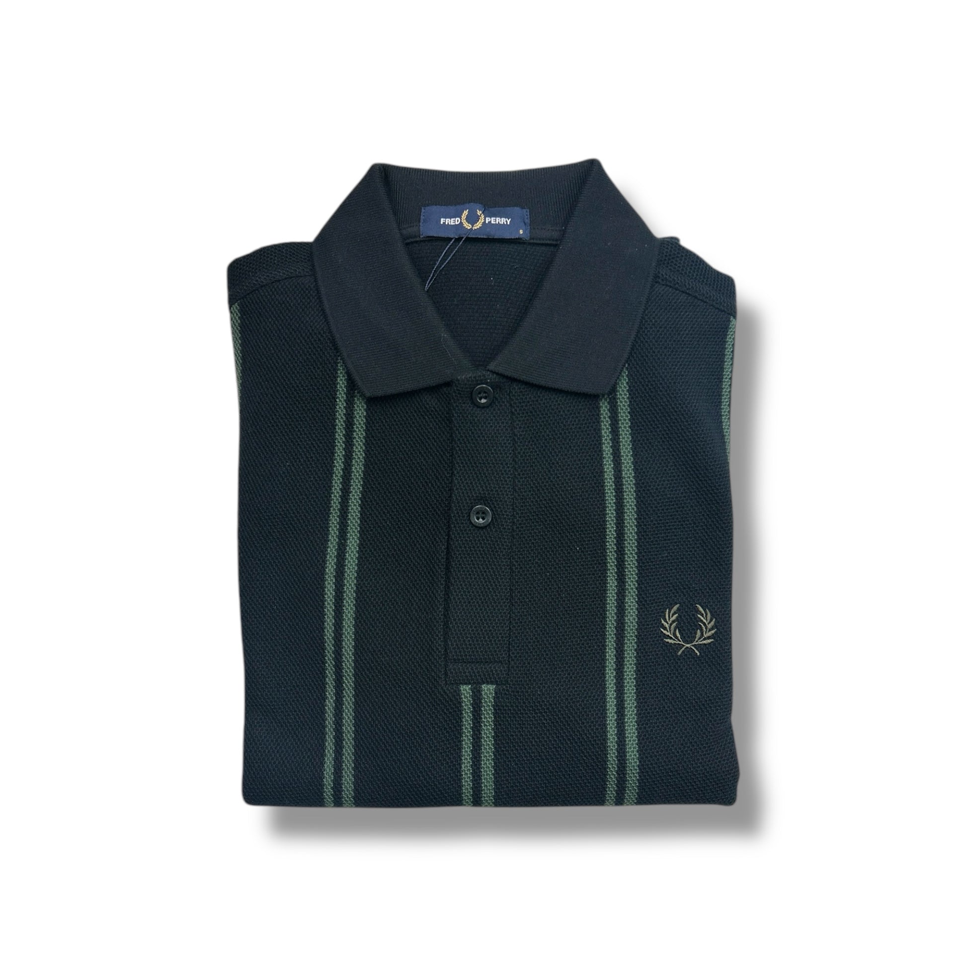 Rock the stripes of this Black and Green Striped Polo Shirt by Fred Perry. Unleash your originality with this creatively designed top that'll set you apart from the rest. It's a playful addition to any outfit, and the stripes not only make a statement but also give the illusion of a longer, slimmer body!
