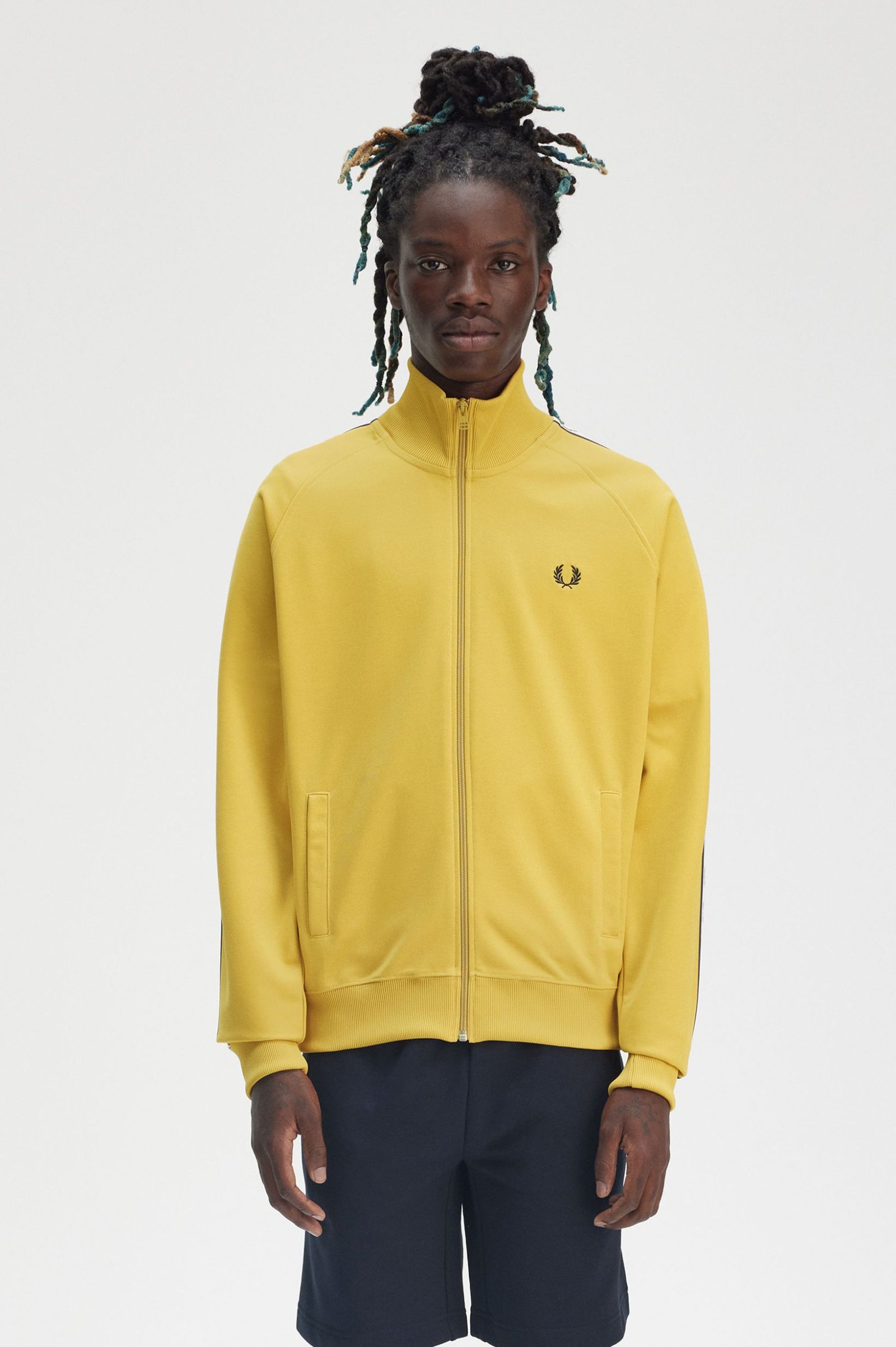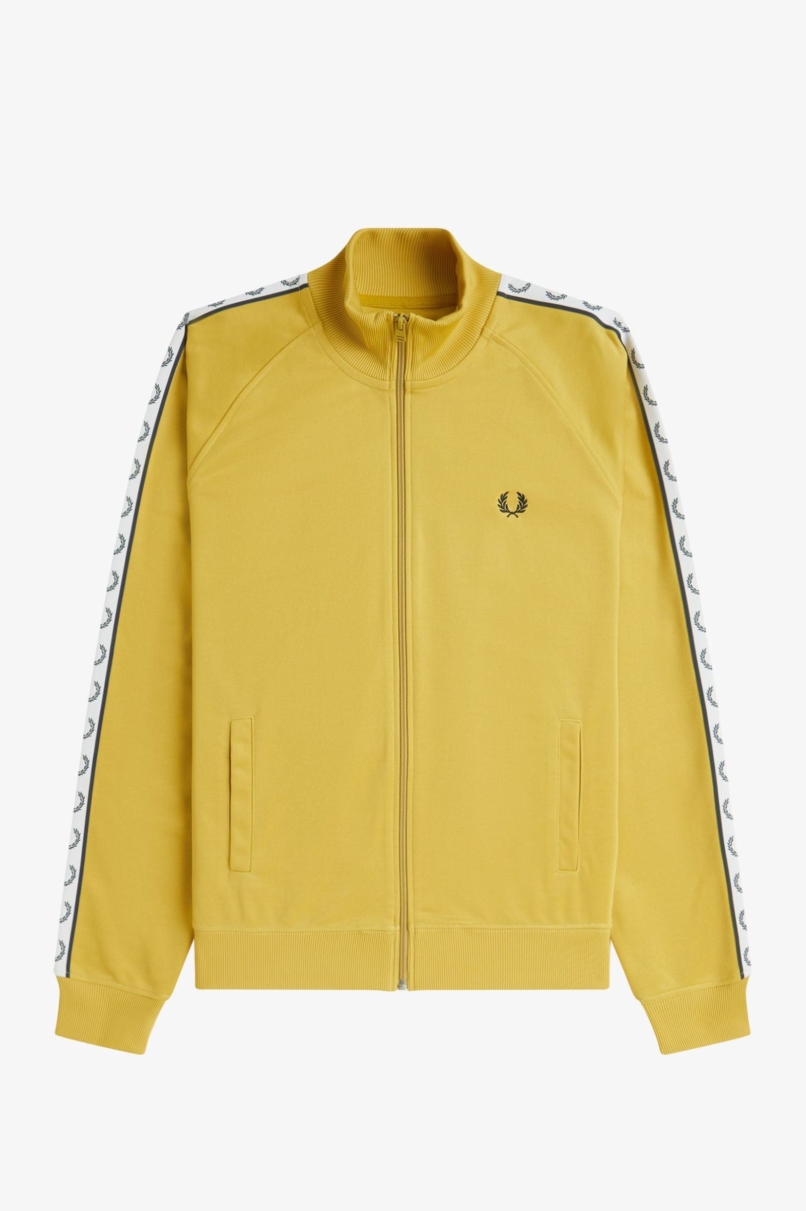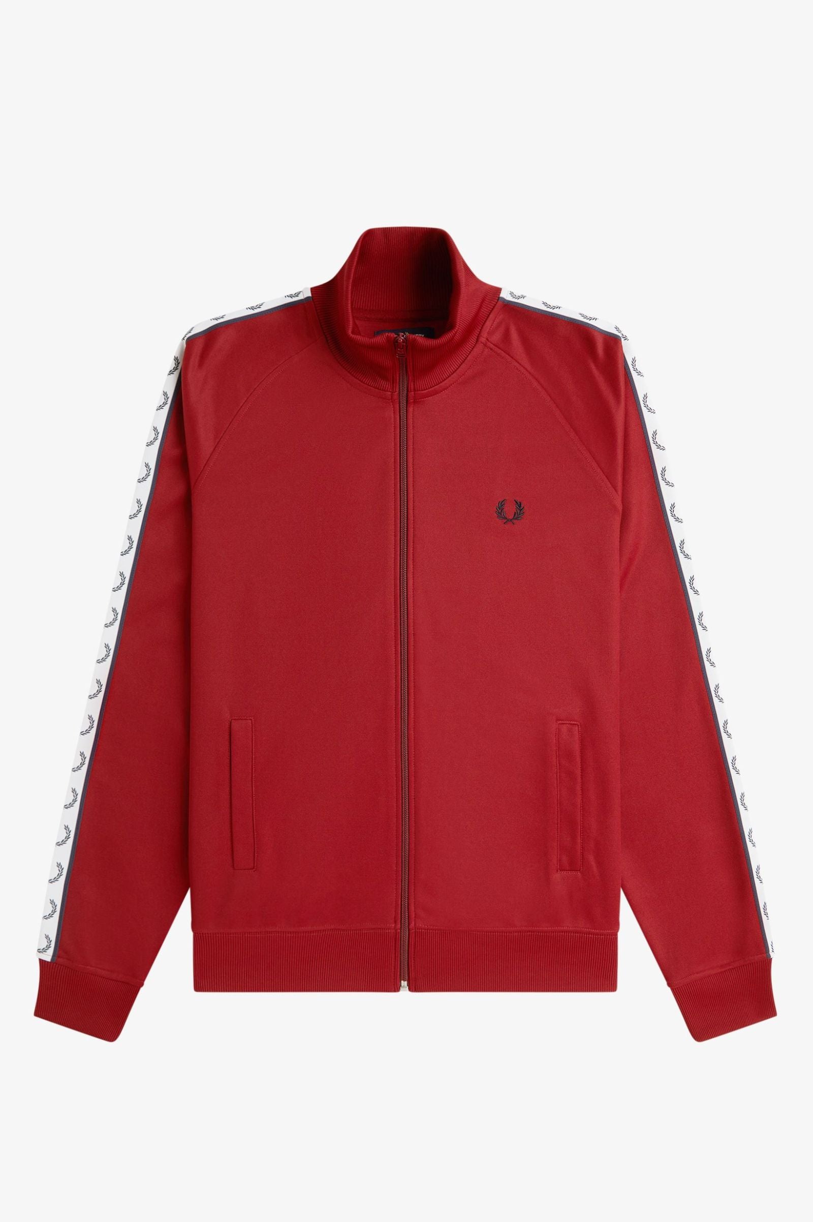 The Fred Perry BLACK TAPED TRACK JACKET combines the sports heritage of the brand with modern design. Featuring glossy tricot fabric, welt pockets, an enamel-coated zip, and Laurel Wreath track tape on the arm, this jacket is the perfect combination of style and comfort.