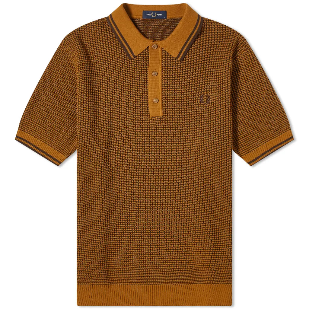 This is a refined version of the classic crew neck, crafted from two-toned textured knit fabric. Chunky ribbed trims and signature Fred Perry tipping around the neck and cuffs provide a dressier look for nights out. 100% Cotton. Machine wash. Model is 6'1" / 186cm and wears a size M.