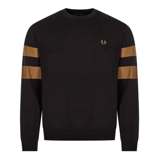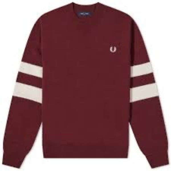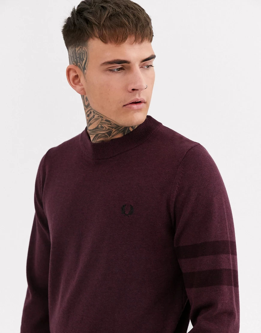 A cotton-wool blend knitted sweatshirt from Fred Perry, this design provides extra warmth and comfort. Features include a ribbed neck, cuffs, and hem for a secure fit, with subtle stripes adorning the left sleeve and the signature FP embroidered laurel wreath. Finished in Mahogany Marl, it's perfect for layering when the weather changes.