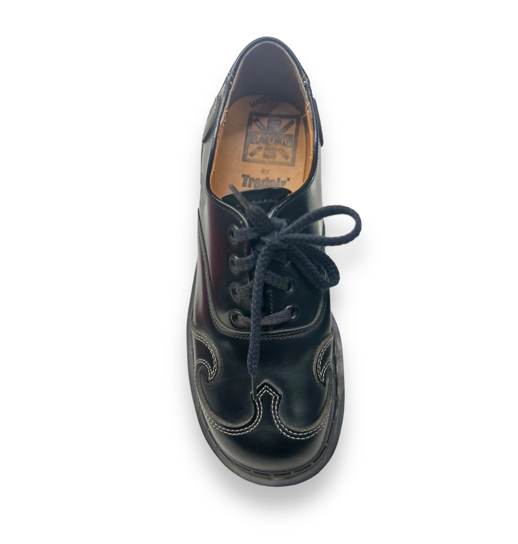 Tredair Black Leather 4 Eyelet Swirly Tie Oxford Shoe
