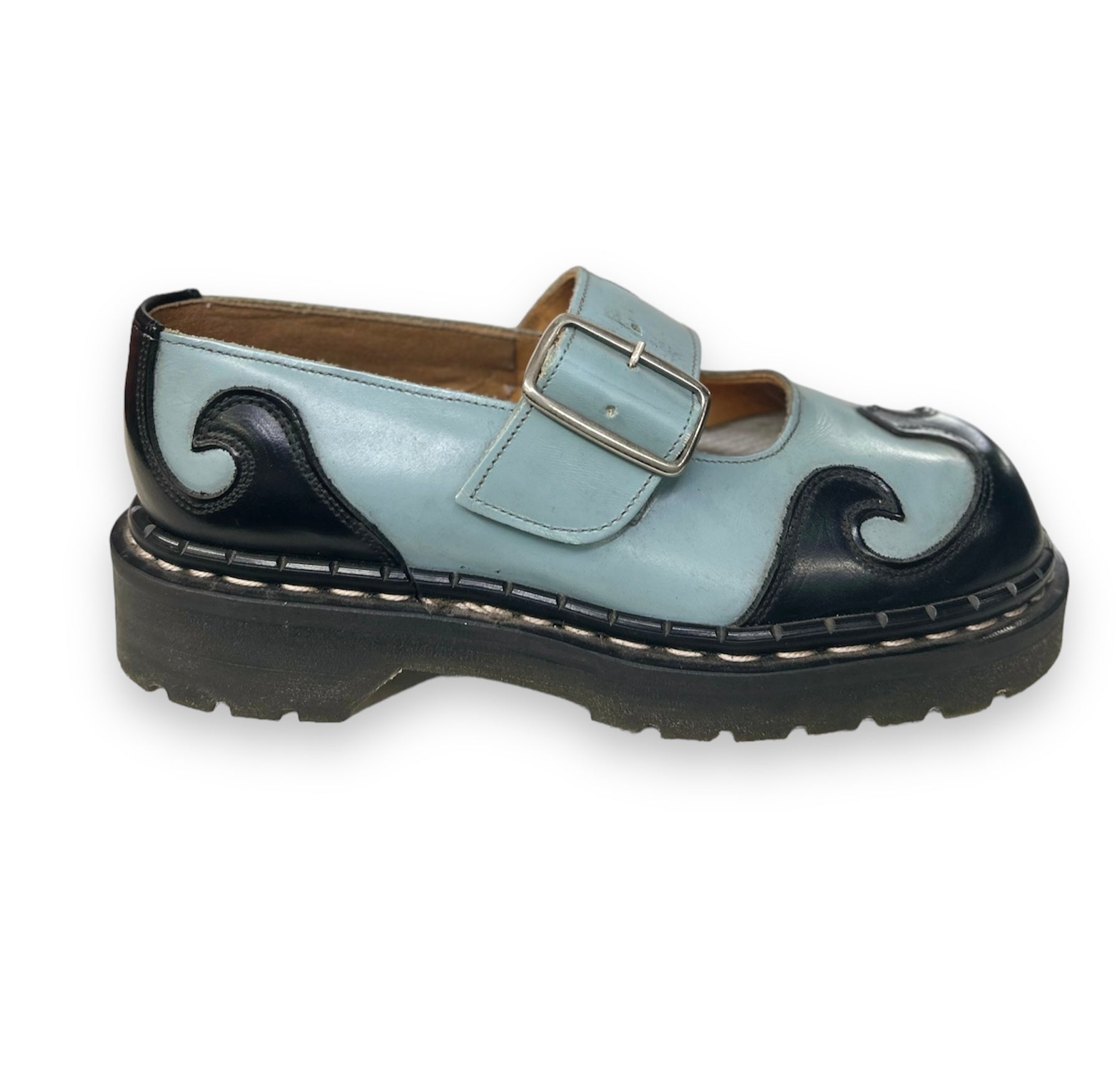 Tredair Black/Pale Blue Swirly Mary Jane Sandal