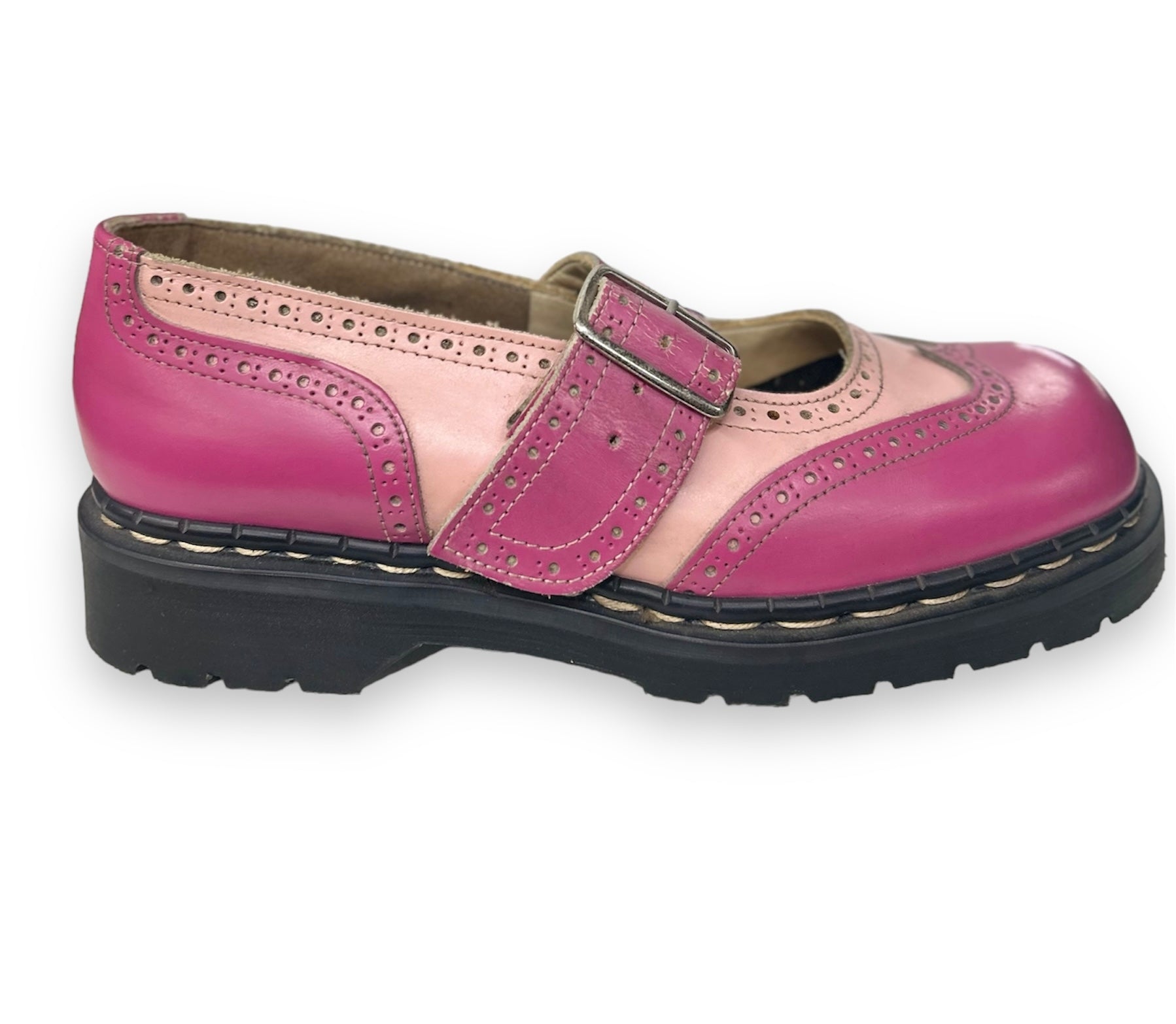 Tredair Light Pink/Dark Pink Brogued Mary Jane Sandal