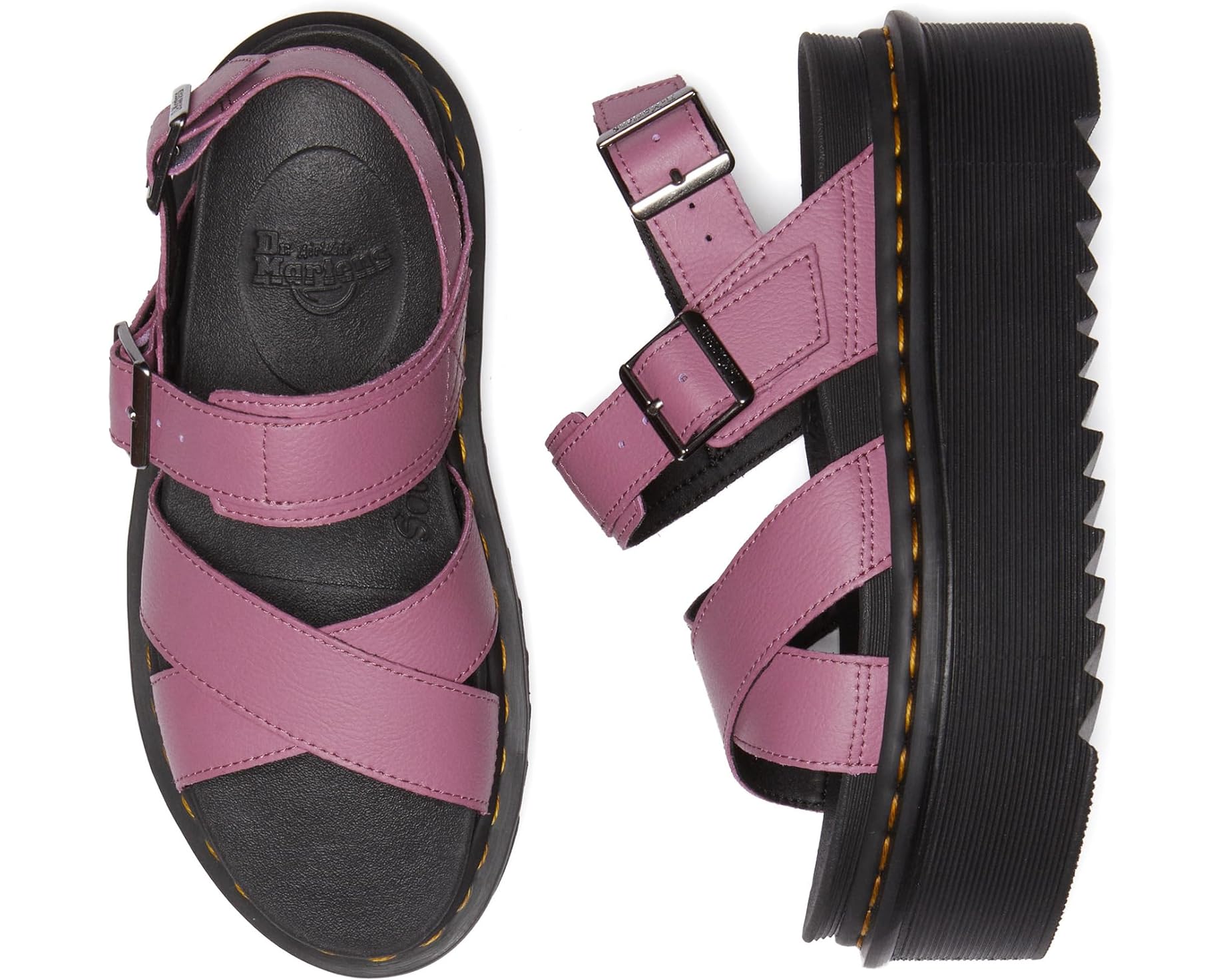 The Voss II Quad Muted Purple is the ultimate combination of comfort and style with its leather upper and lining, synthetic insole, and adjustable double-buckle strap closure. Walk with ease on the platform heel and synthetic outsole. Imported for your convenience.